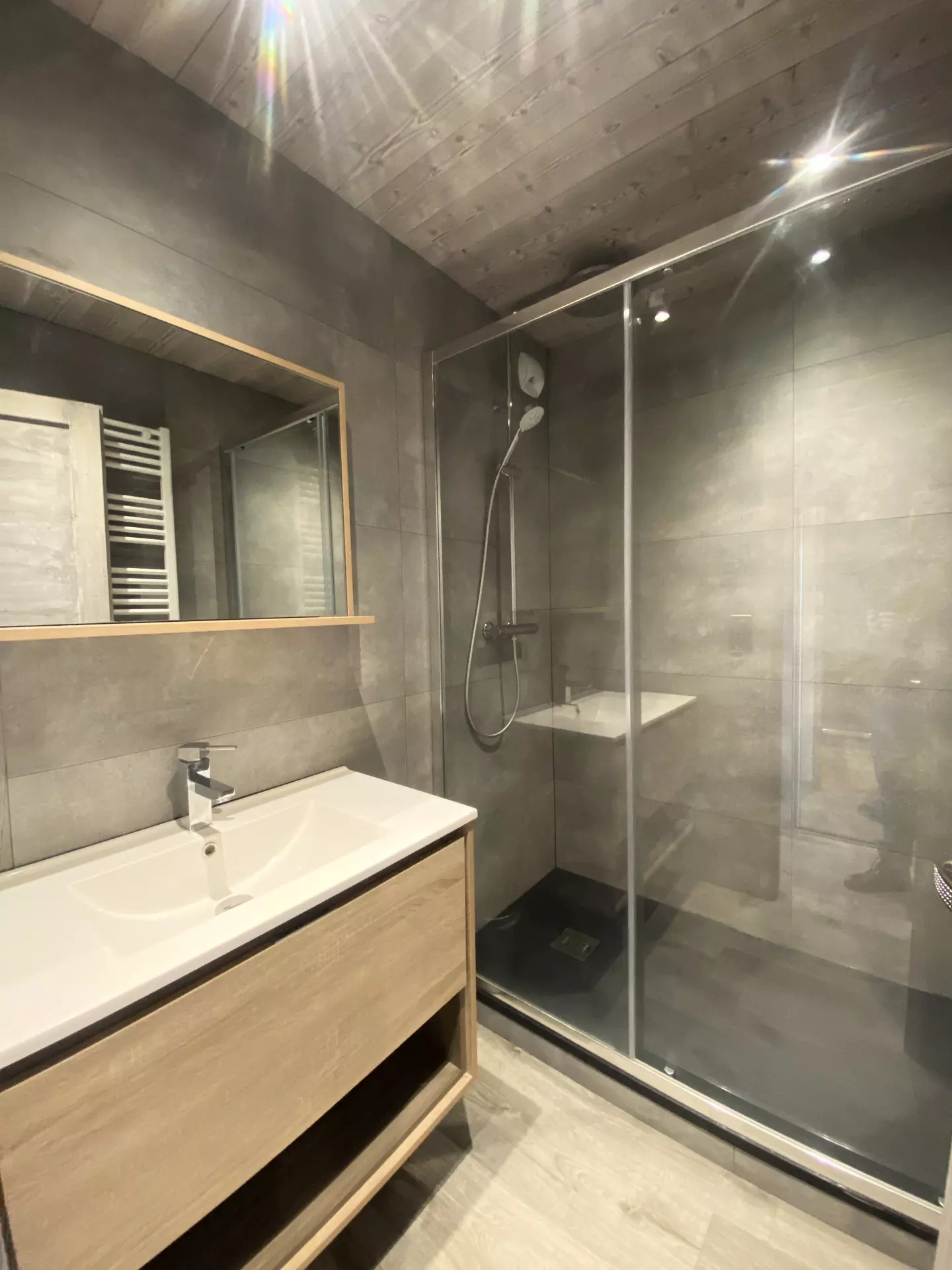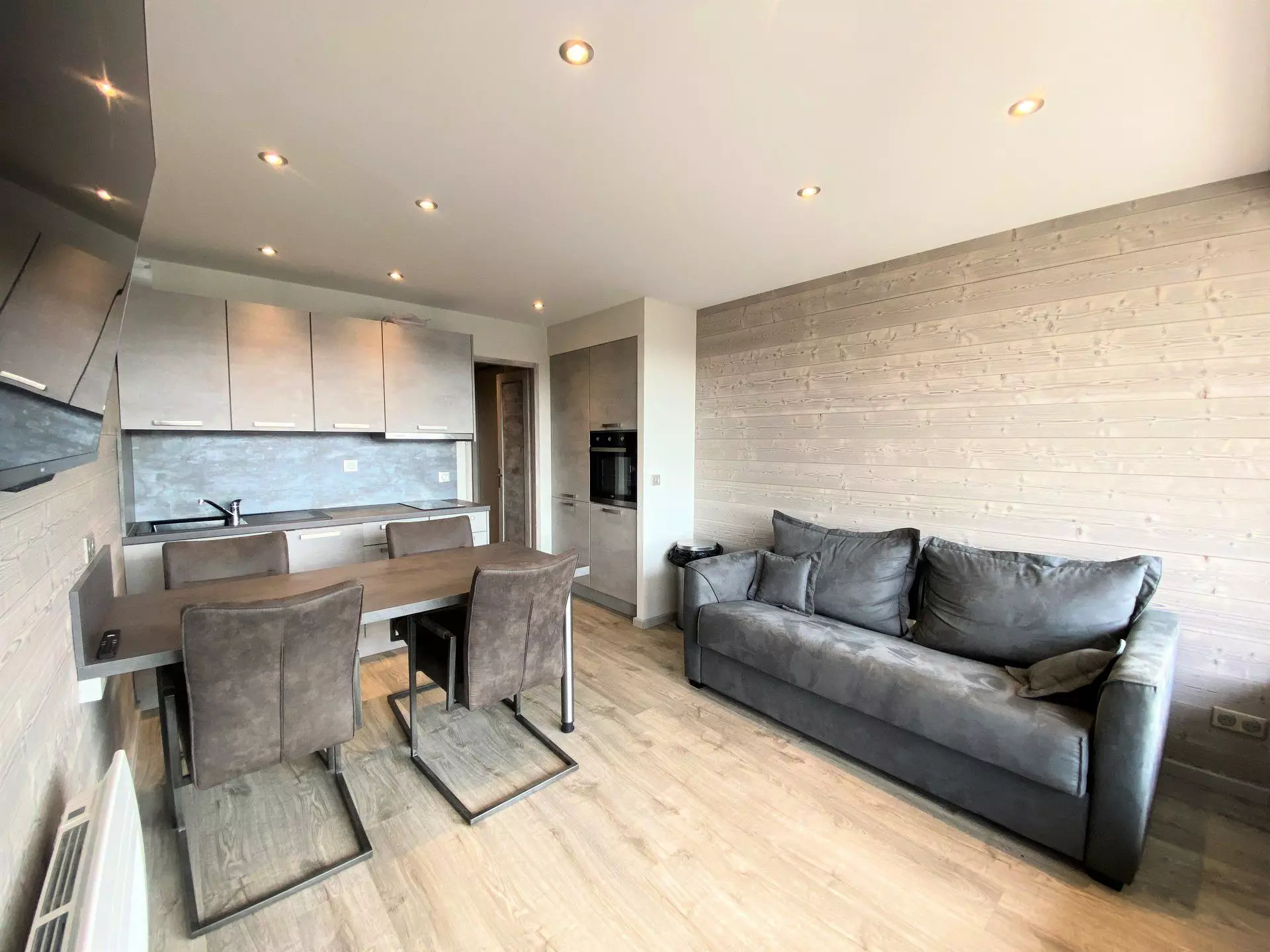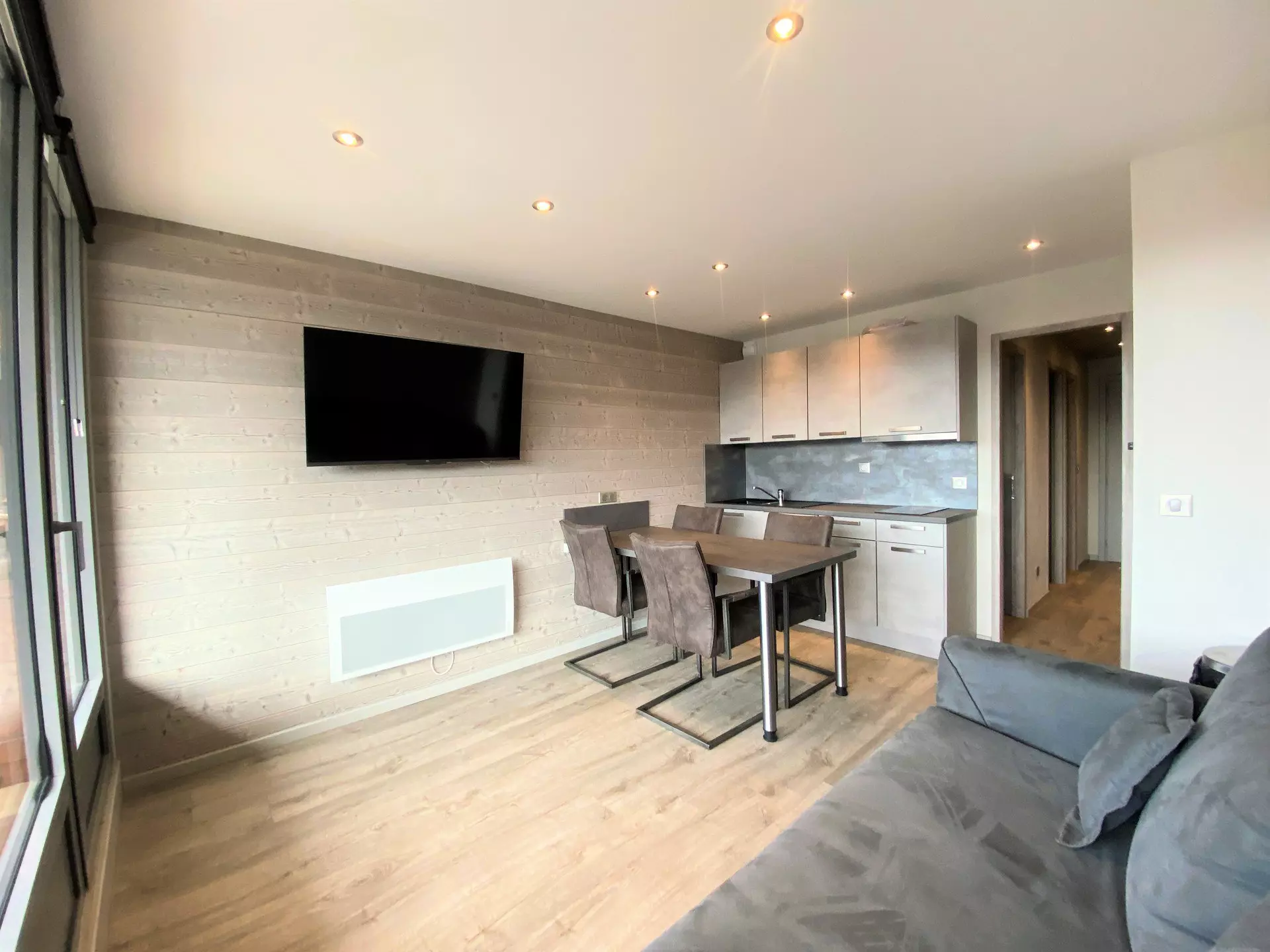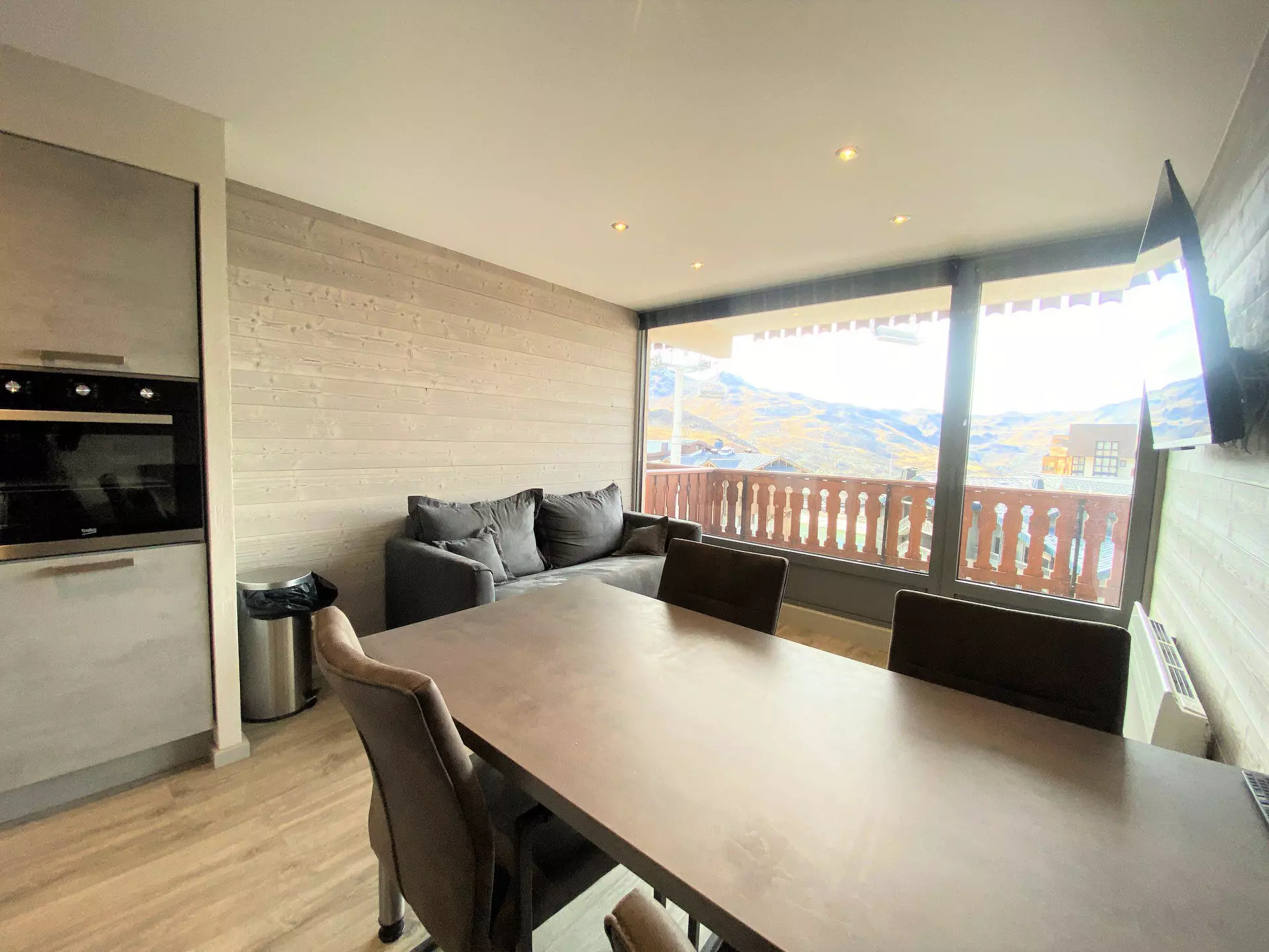 This studio of approximately 28M2, completely renovated, on the 4th floor has a pretty balcony facing southwest with a beautiful view of the resort and the peaks.