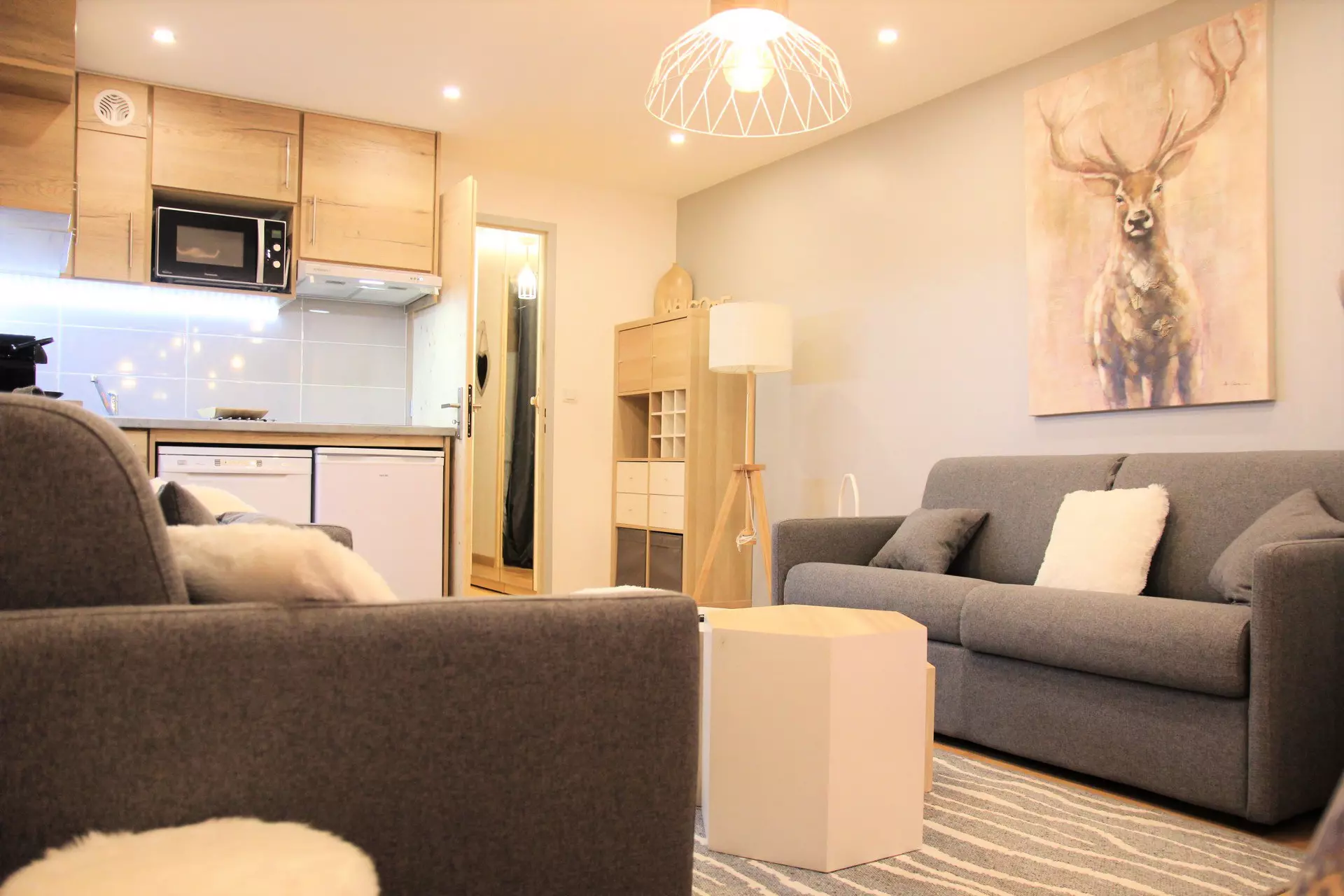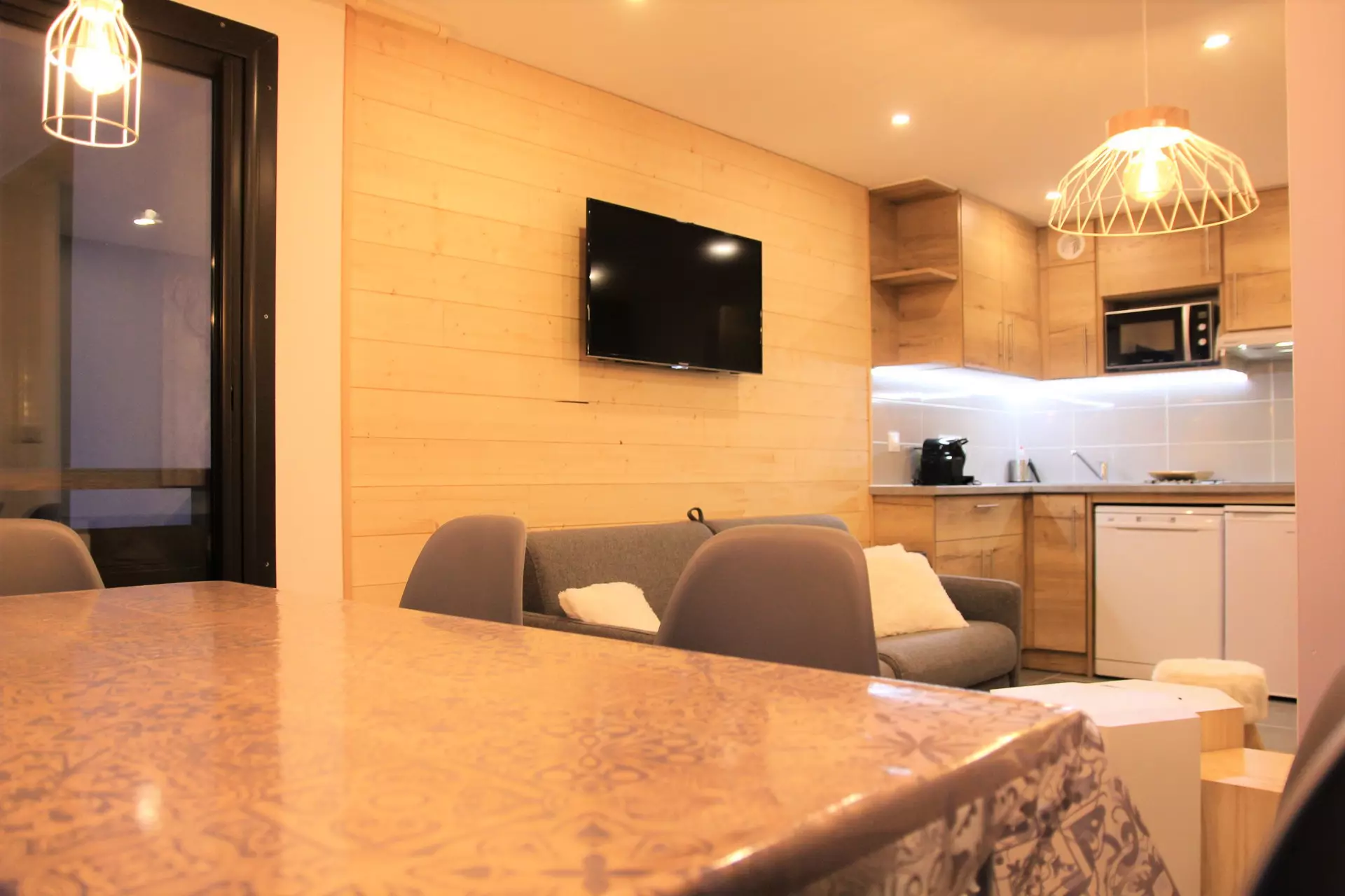 This apartment for 6 people, with a surface area of approximately 35 m², is on the 1st floor with elevator and has a balcony closed by a veranda facing south/east.