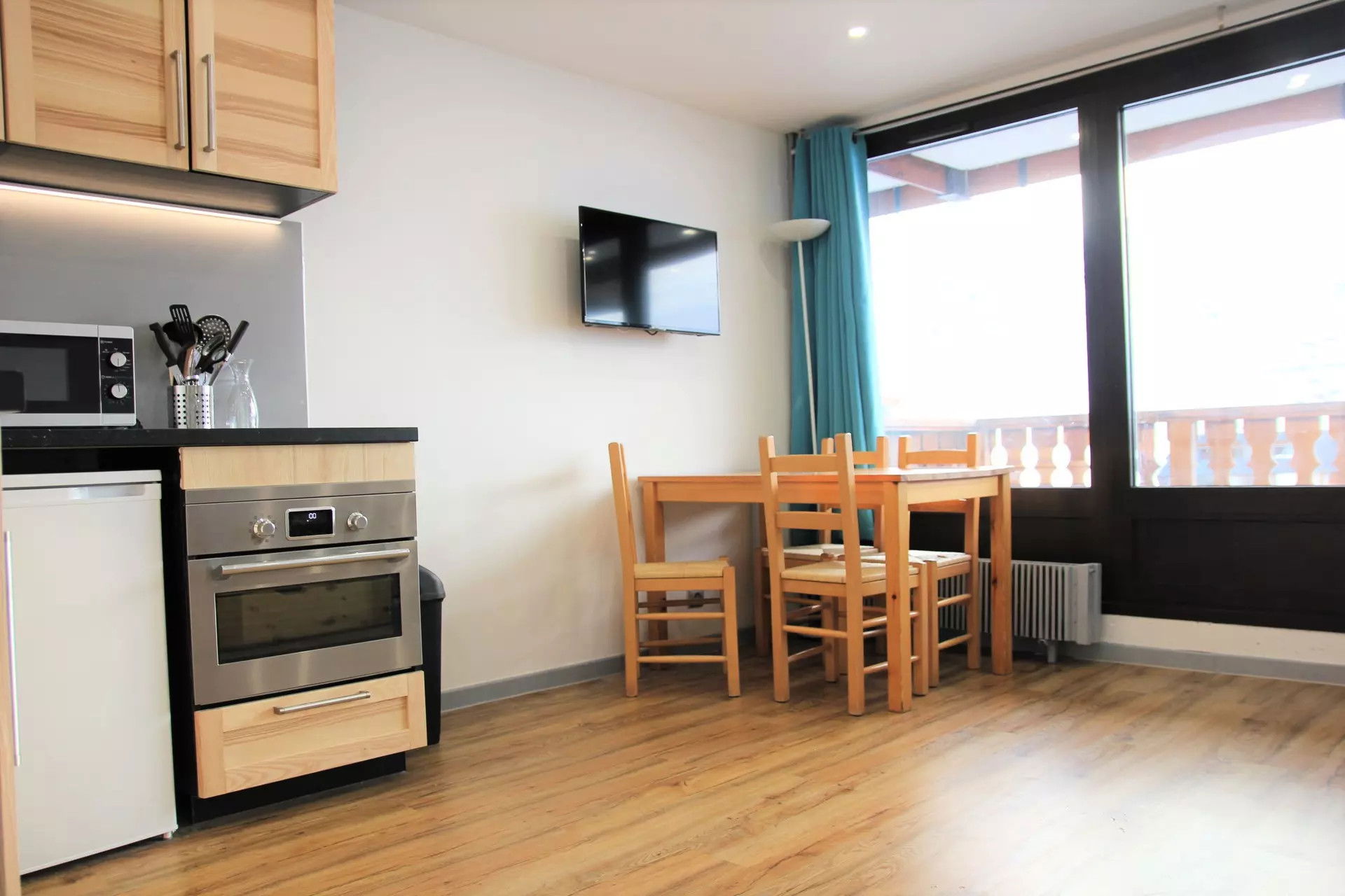 The kitchen is equipped with an oven and dishwasher, with a space for enjoying your meals in a friendly atmosphere.