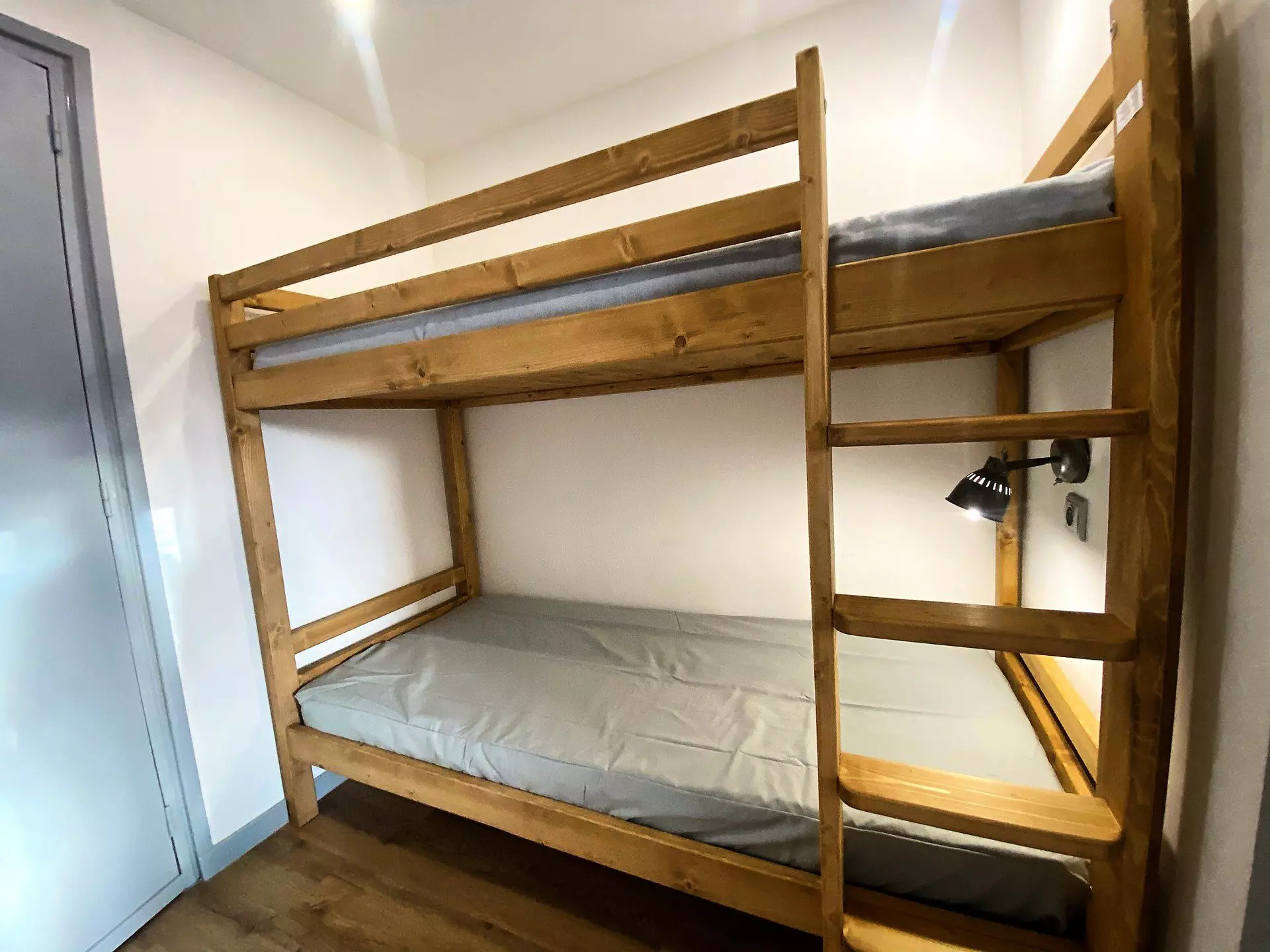 You will find 2 bunk beds in the entrance and a trundle bed in the living room.