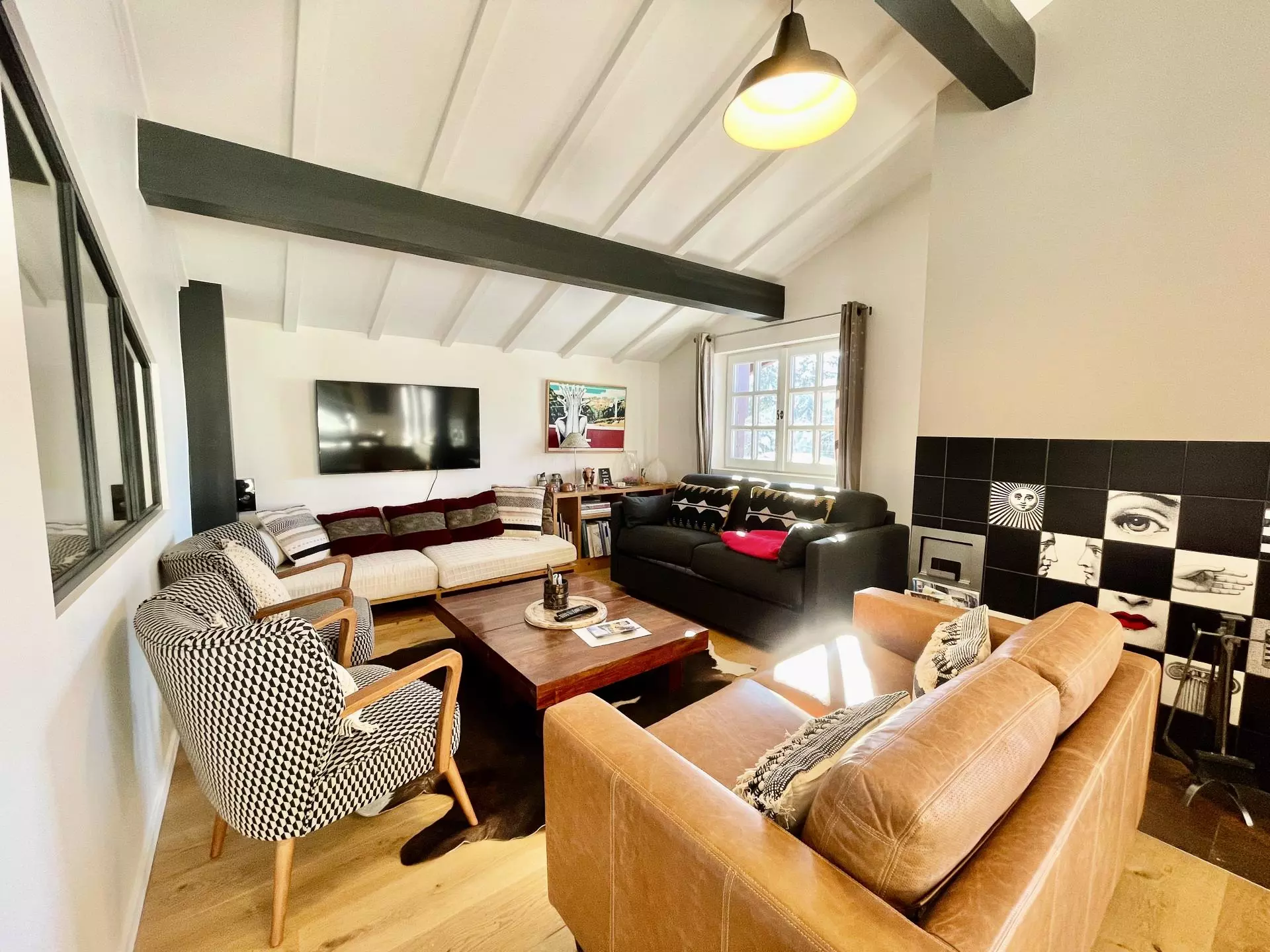 - large main room with fully equipped kitchen (induction hob: four burners, oven, microwave, dishwasher, refrigerator), wood stove, two-seater sofa bed (140), flat screen television,