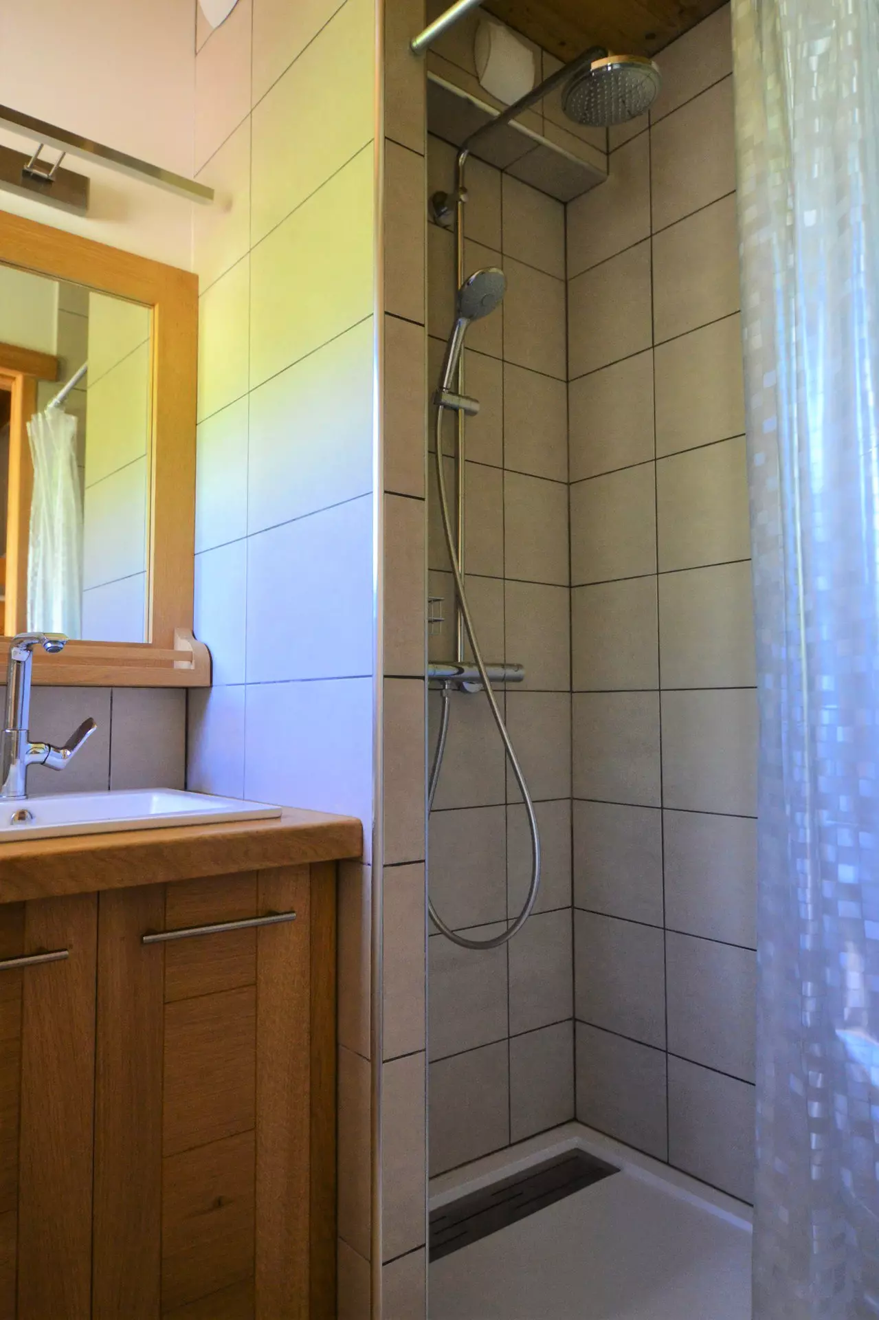 - Bathroom with walk-in shower and toilet.
