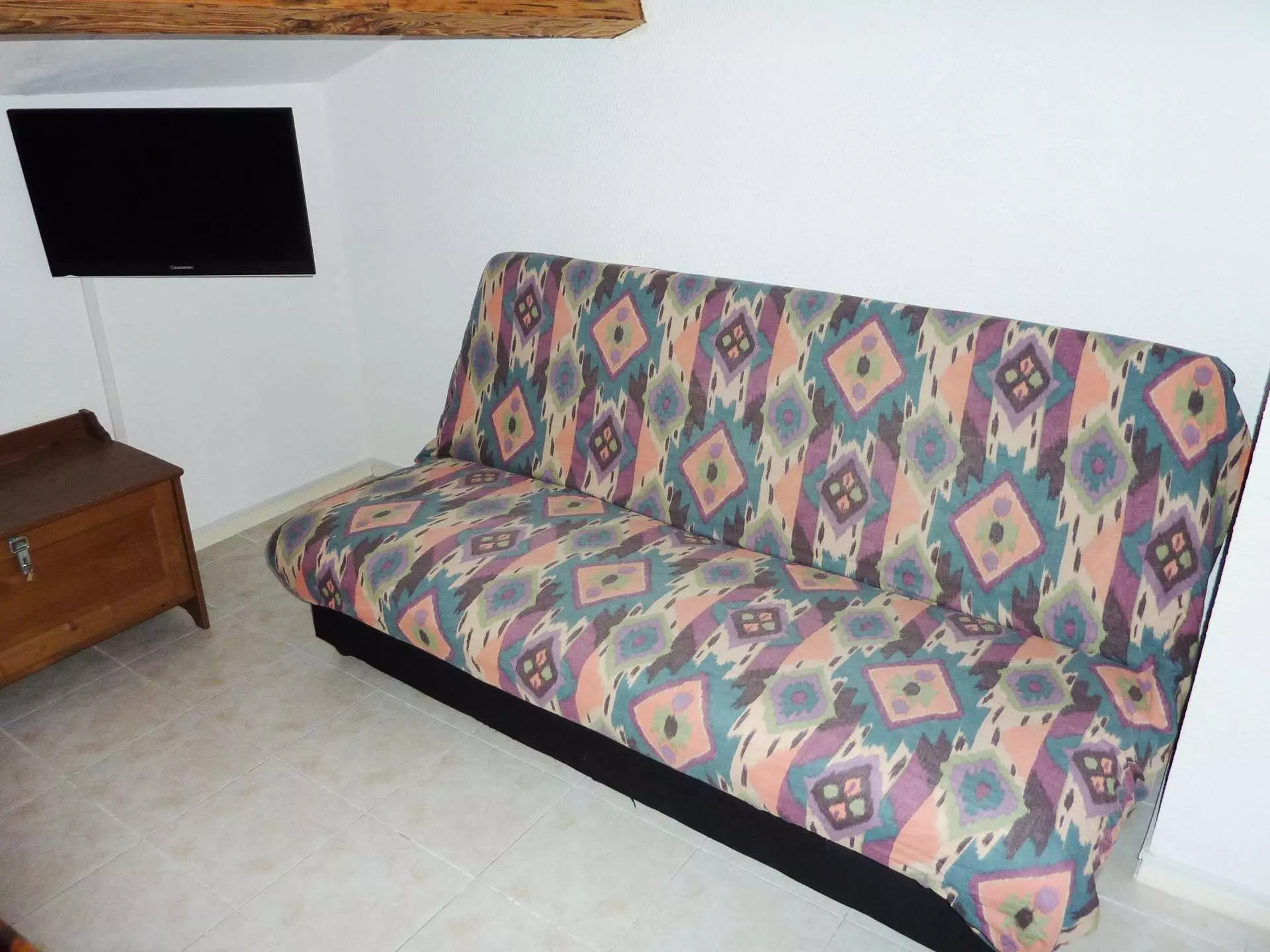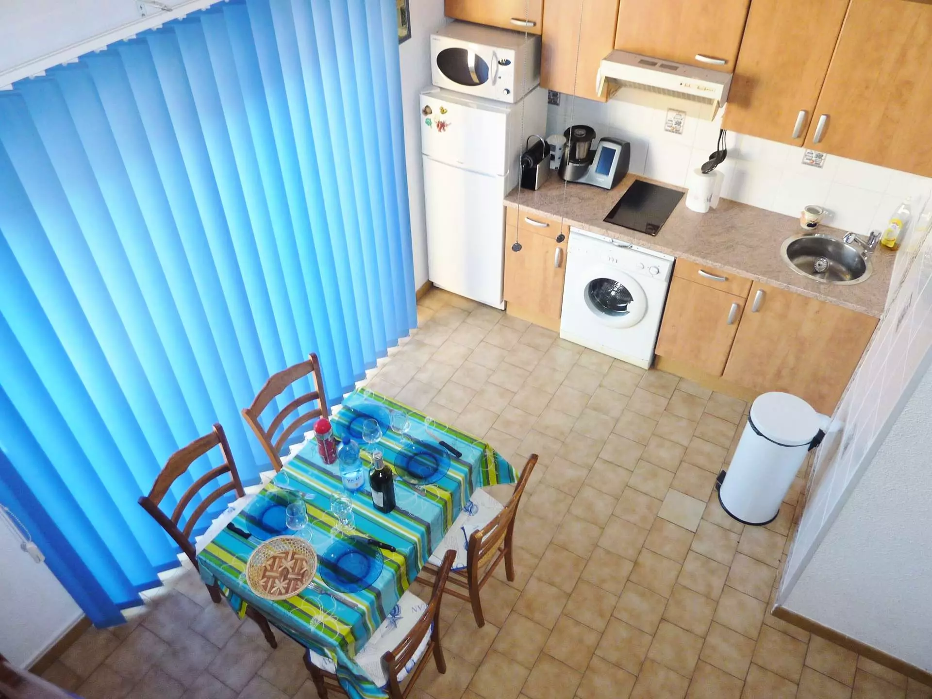 Bright living room with a television, table, and chairs. The space is welcoming and ideal for relaxing. The fully equipped open kitchen has a microwave, refrigerator/freezer, ceramic hob, electric coffee maker, washing machine, and all the necessary dishes. A bedroom with a large bed for a good night's sleep. A functional bathroom with a shower and sink, with a separate toilet for added convenience. A spacious mezzanine: a large bed, a sofa bed, and a television.