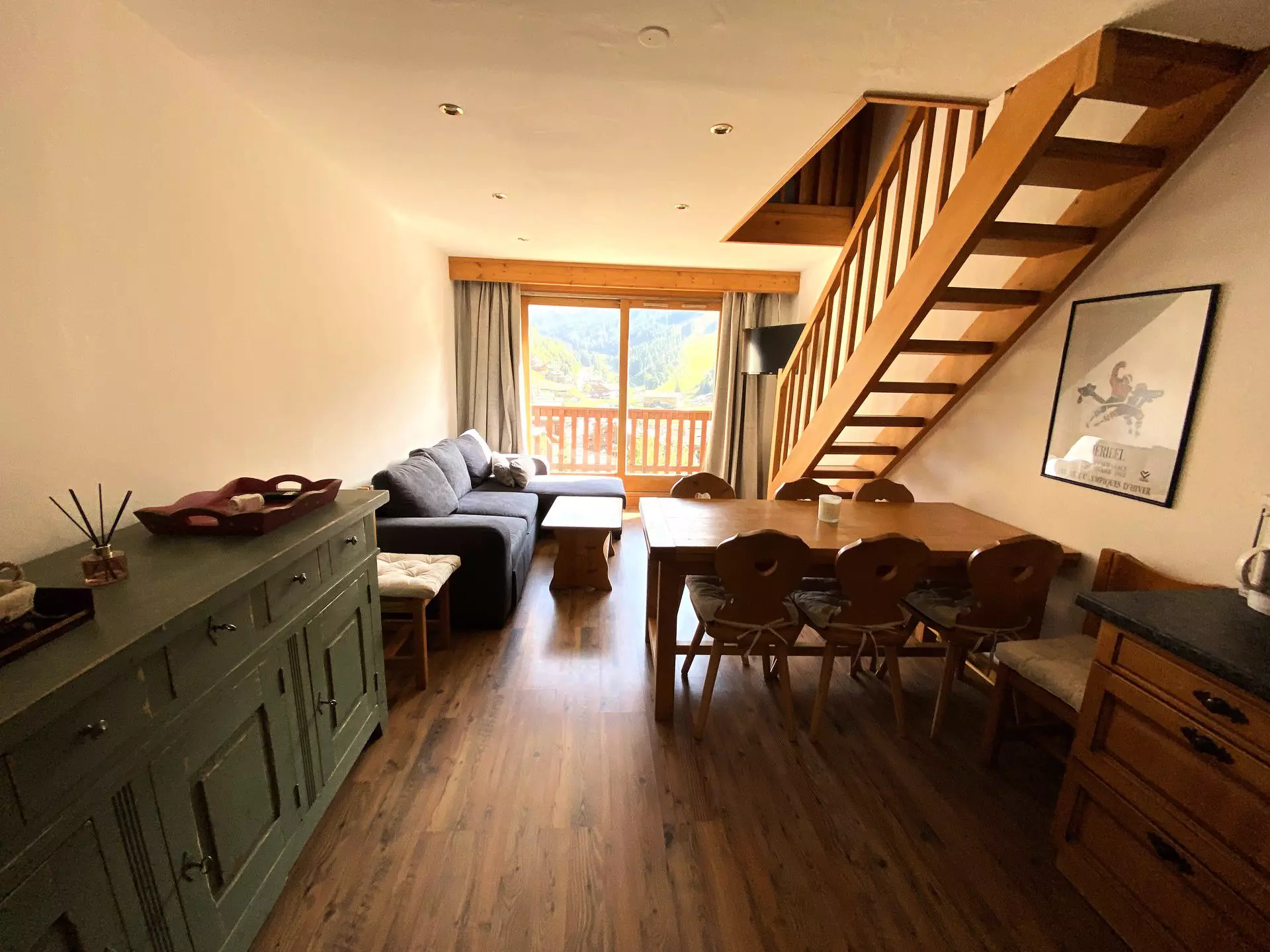 For your winter or summer mountain vacation in Méribel, book this 3-room duplex apartment ideally located at the foot of the slopes in the heart of the resort. It boasts a south-facing balcony with beautiful views of the mountains and the resort center.