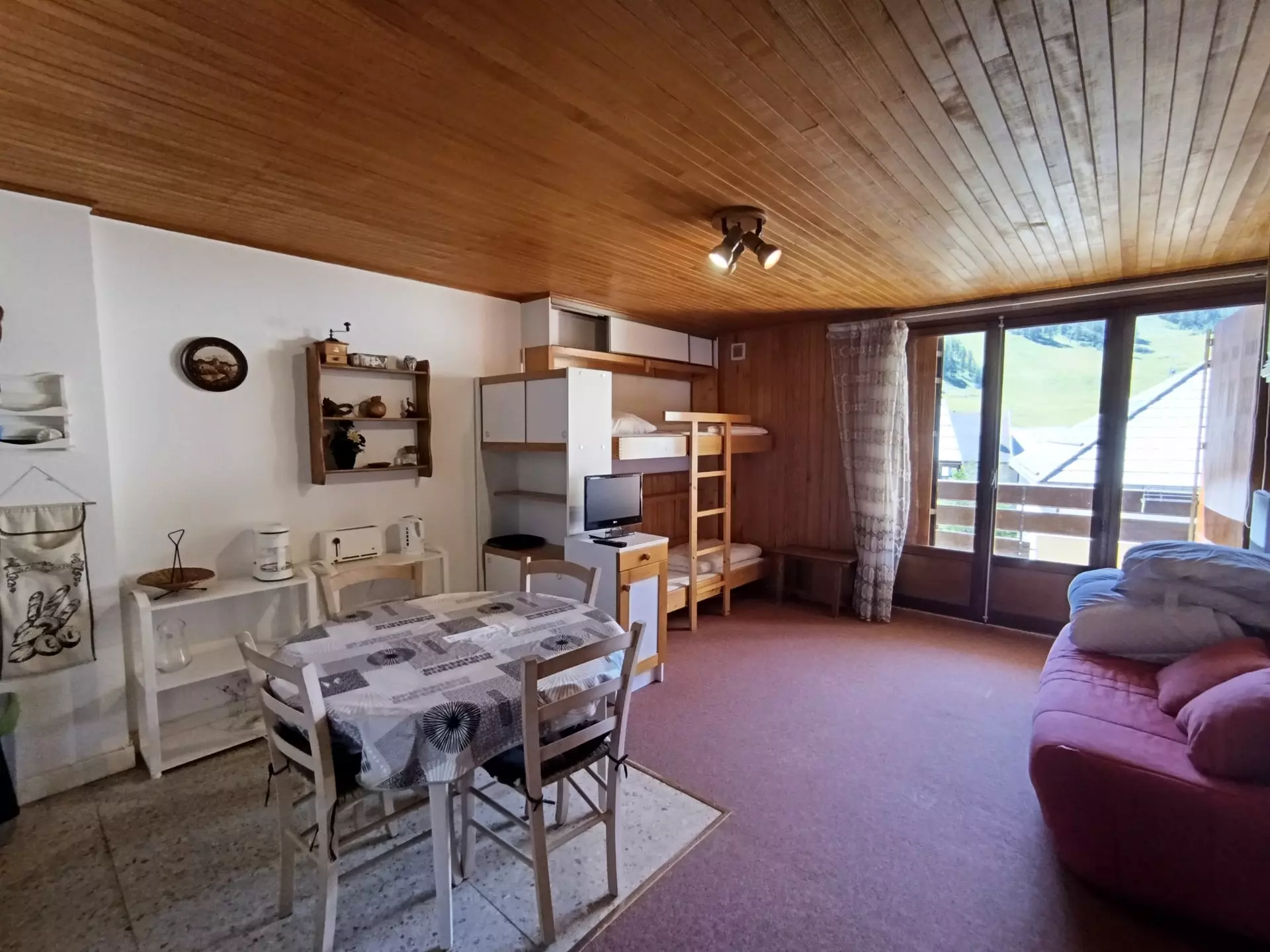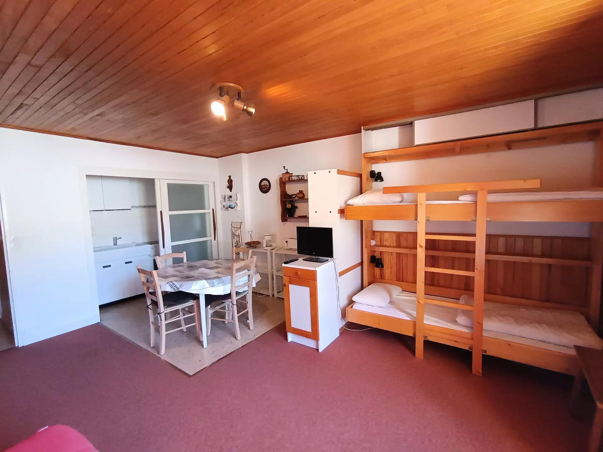 Living room: a double sofa bed (160x200), two single bunk beds (80x190)