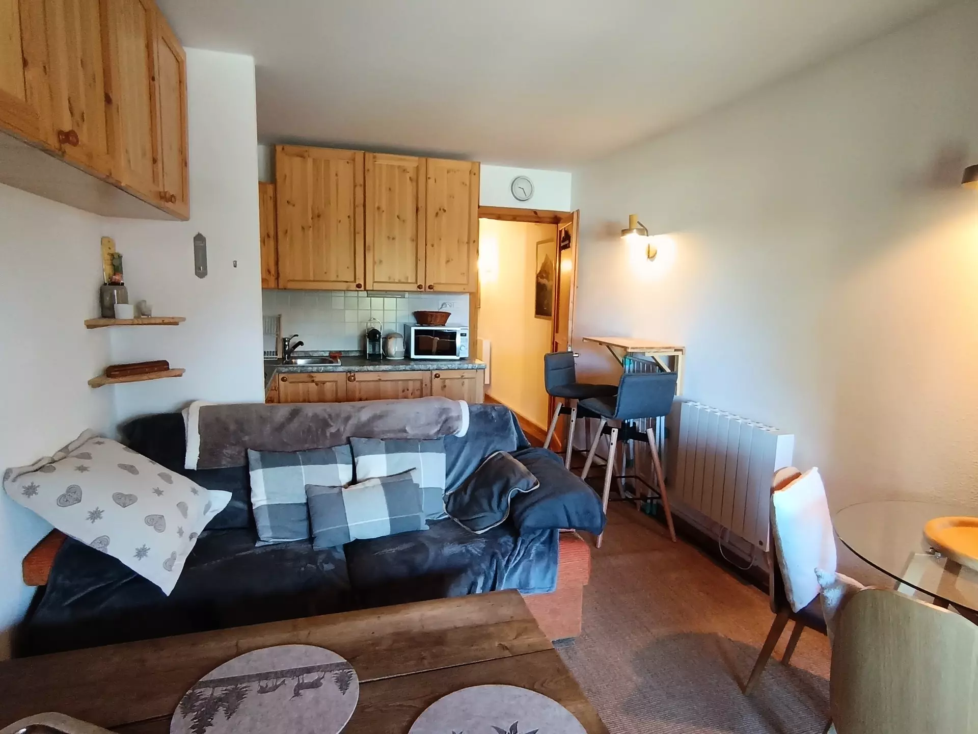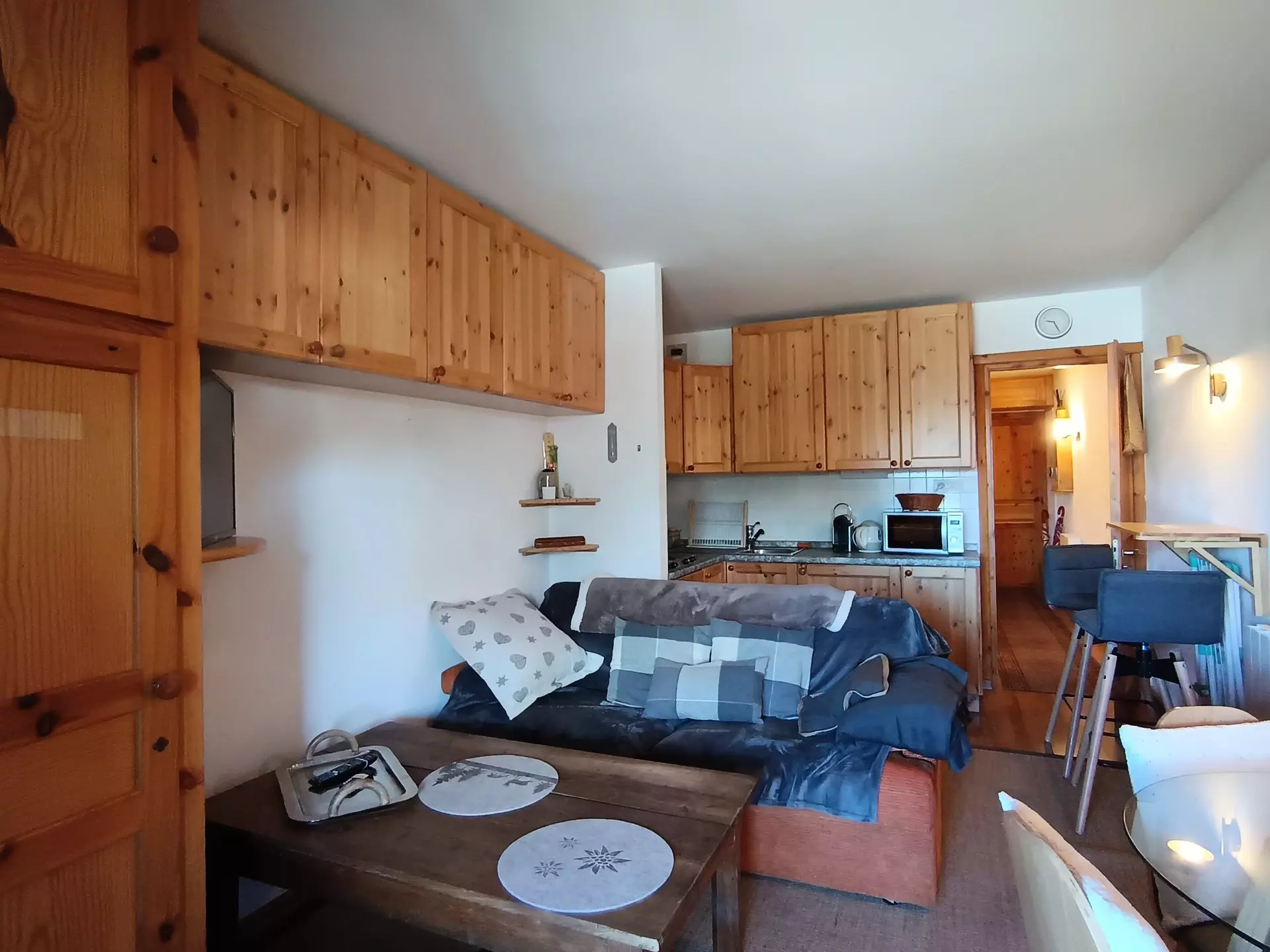 The +: Apartment with small terrace and superb view of the Janus and the slopes - Ski shuttle 20m from the residence. Cozy and very pleasant. Small residence very well maintained and very quiet. Private parking at the residence