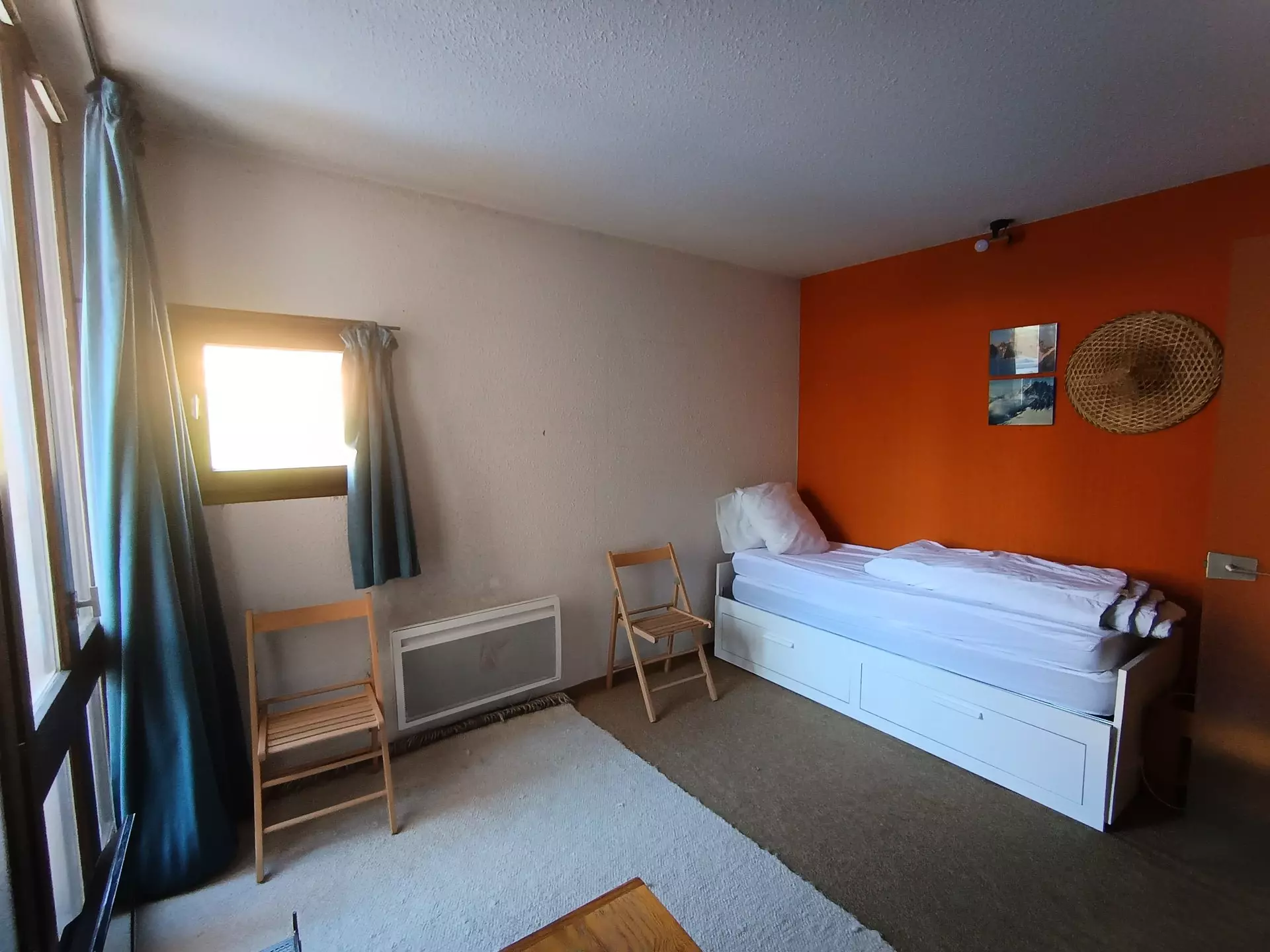The -: Very old carpet in the living room - North exposure - 70-80 cm beds with very thin mattresses - very old, unrenovated bathroom - not very bright.