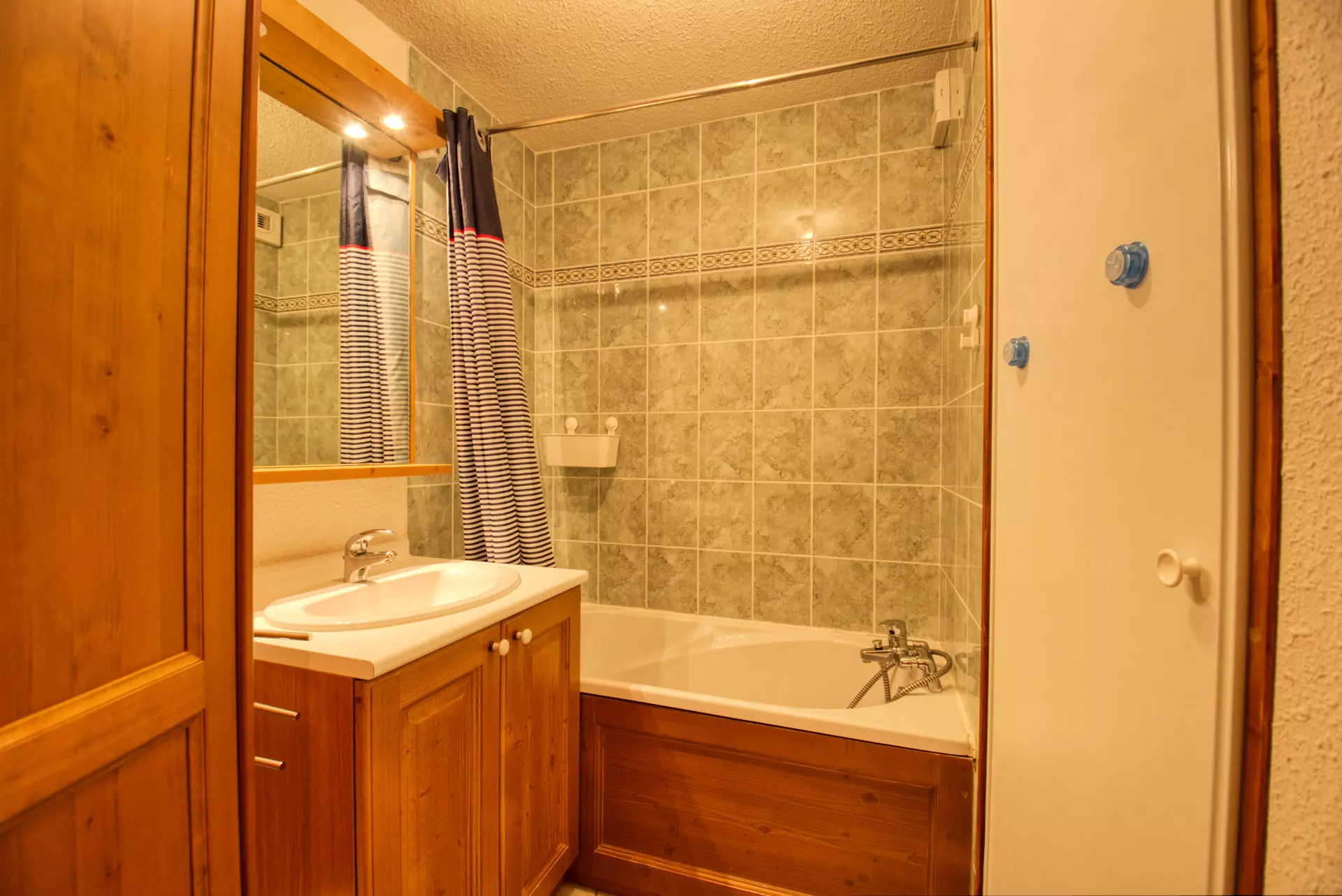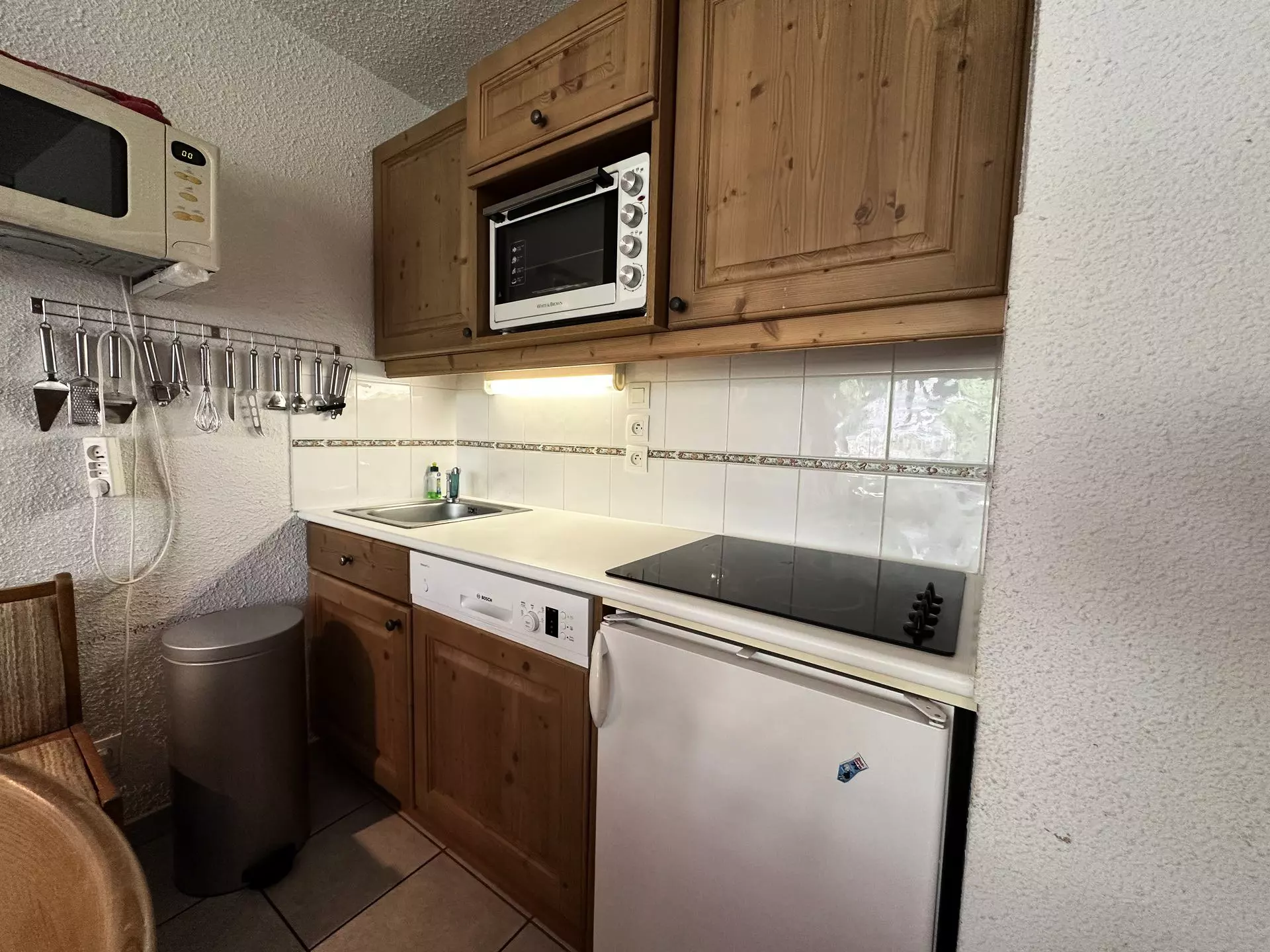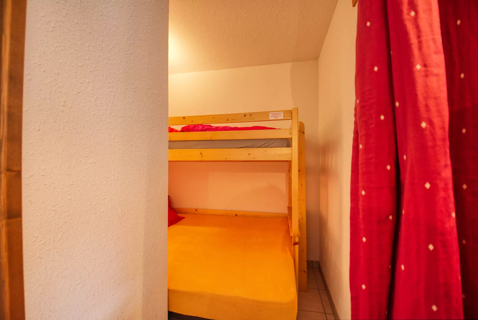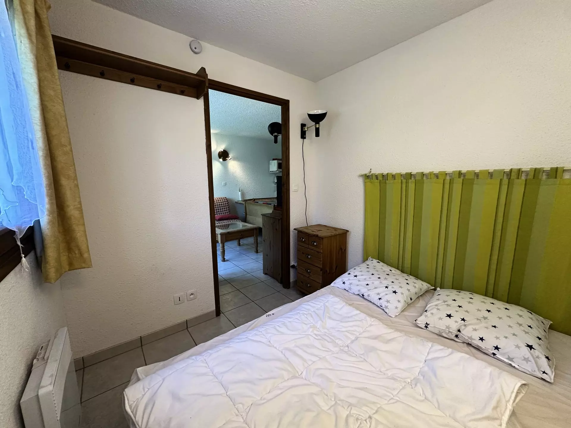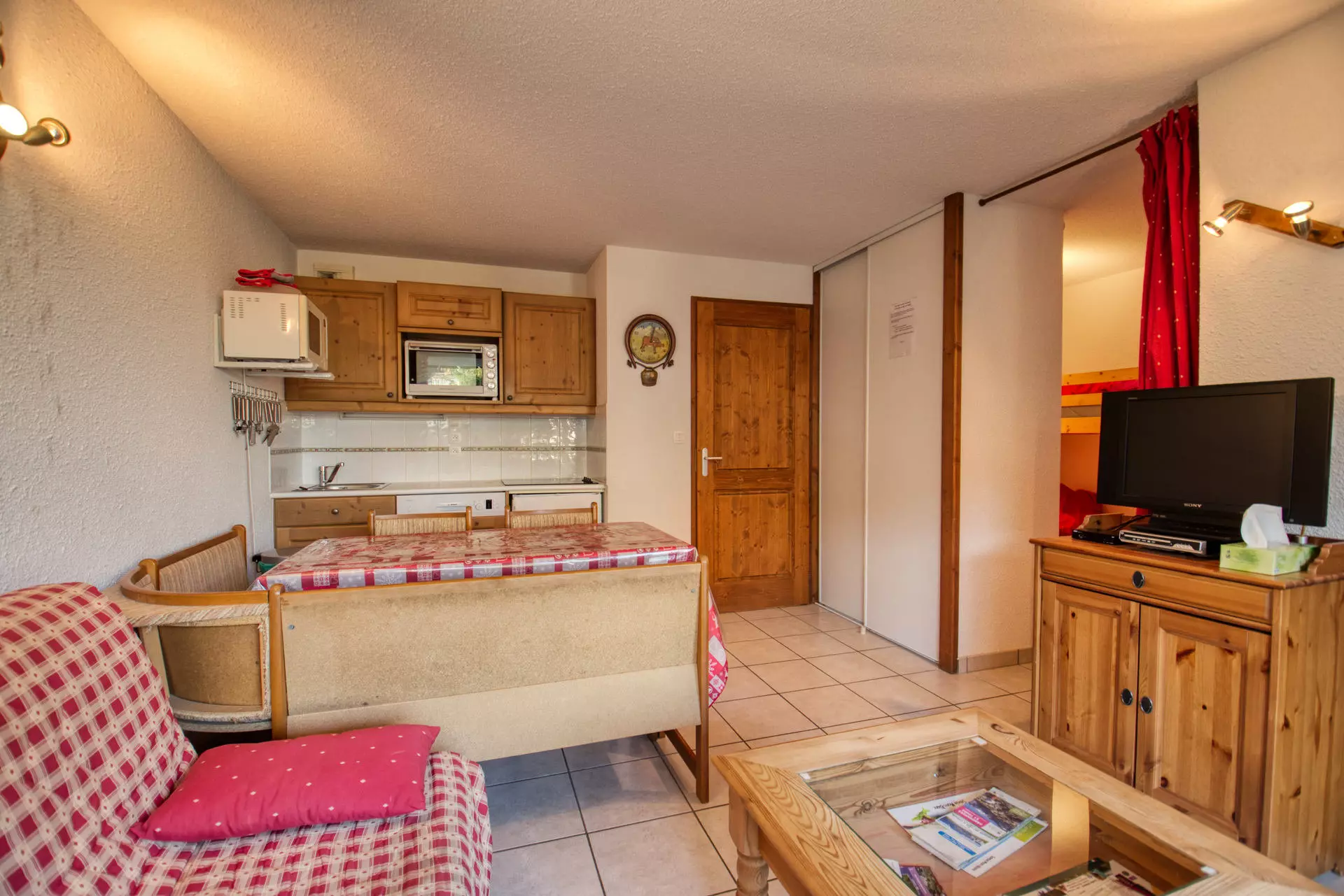 The apartment includes an entrance hall with closet, a bedroom, a sleeping alcove. You will also find a living room with a convertible sofa bed (130x190) and a television, as well as a fully equipped kitchen area. The bathroom has a bathtub and toilet.
