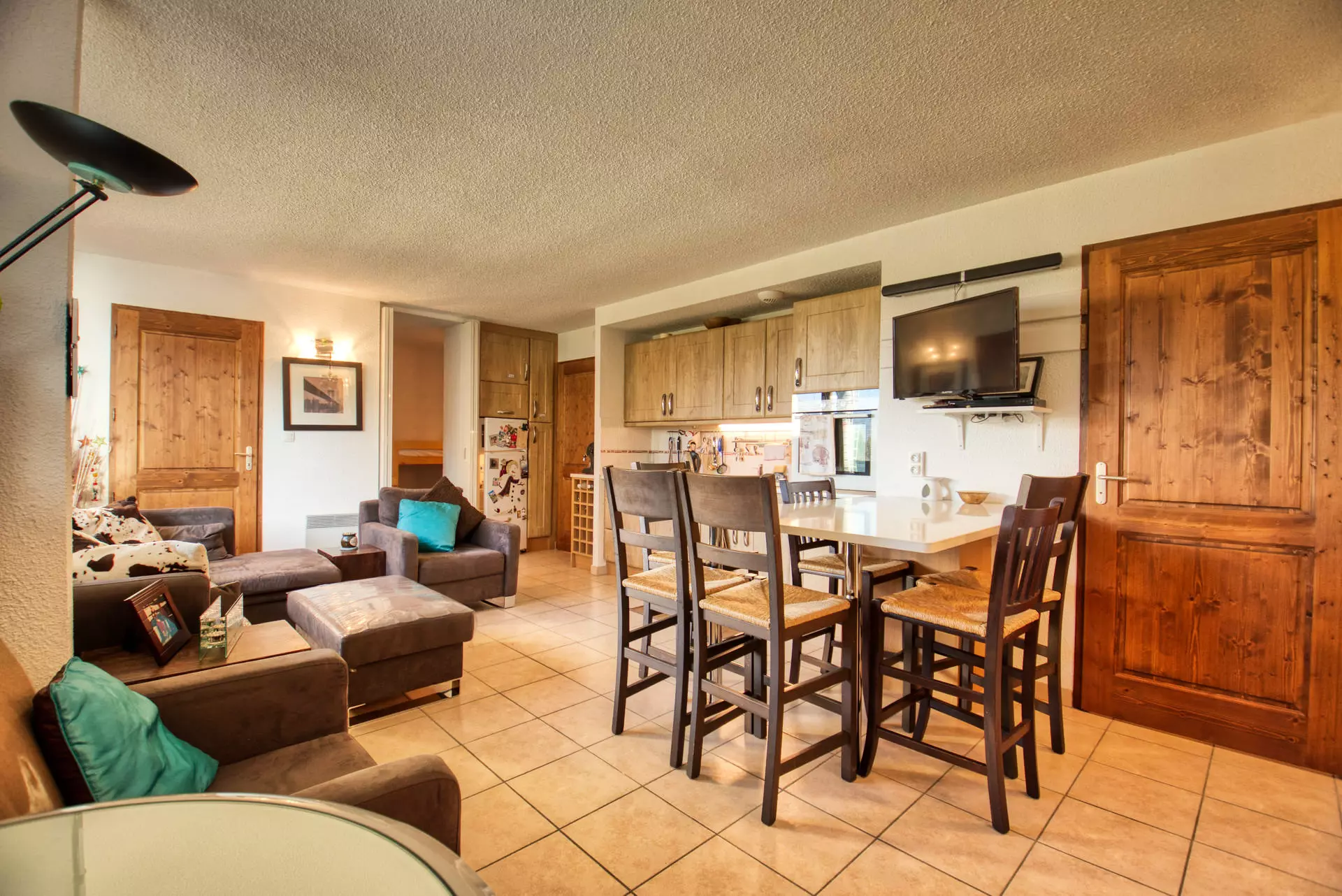 Located at the foot of the slopes in Morillon 1100, this spacious 60.69 m² apartment is ideal for 6 people, with the possibility of accommodating 7 people. It is located at the slope level with access to level -2 (no elevator), offering convenient access to outdoor activities.