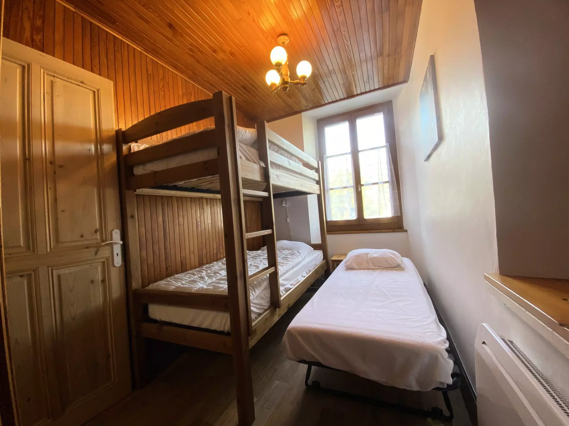 A second bedroom with bunk beds 80 x 190 (the upper bunk is not suitable for children under 6 years old) + 1 trundle bed 80 x 190 (one person) which can be placed at the same height