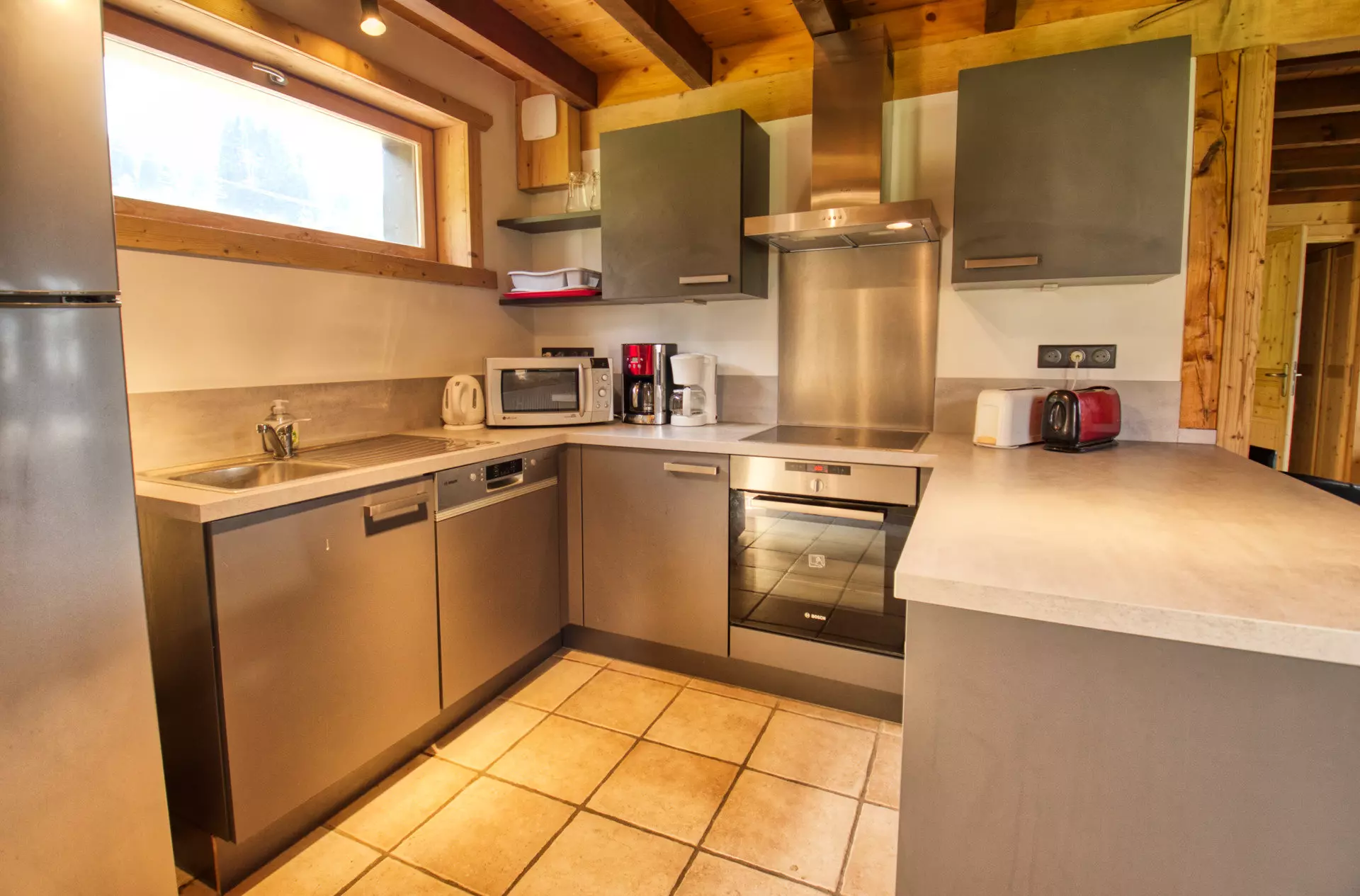 The kitchen is equipped with: a fridge/freezer, hotplates, an oven, a washing machine, a dishwasher, a microwave, two electric coffee makers, a toaster, an electric kettle, as well as a raclette machine and a fondue set.