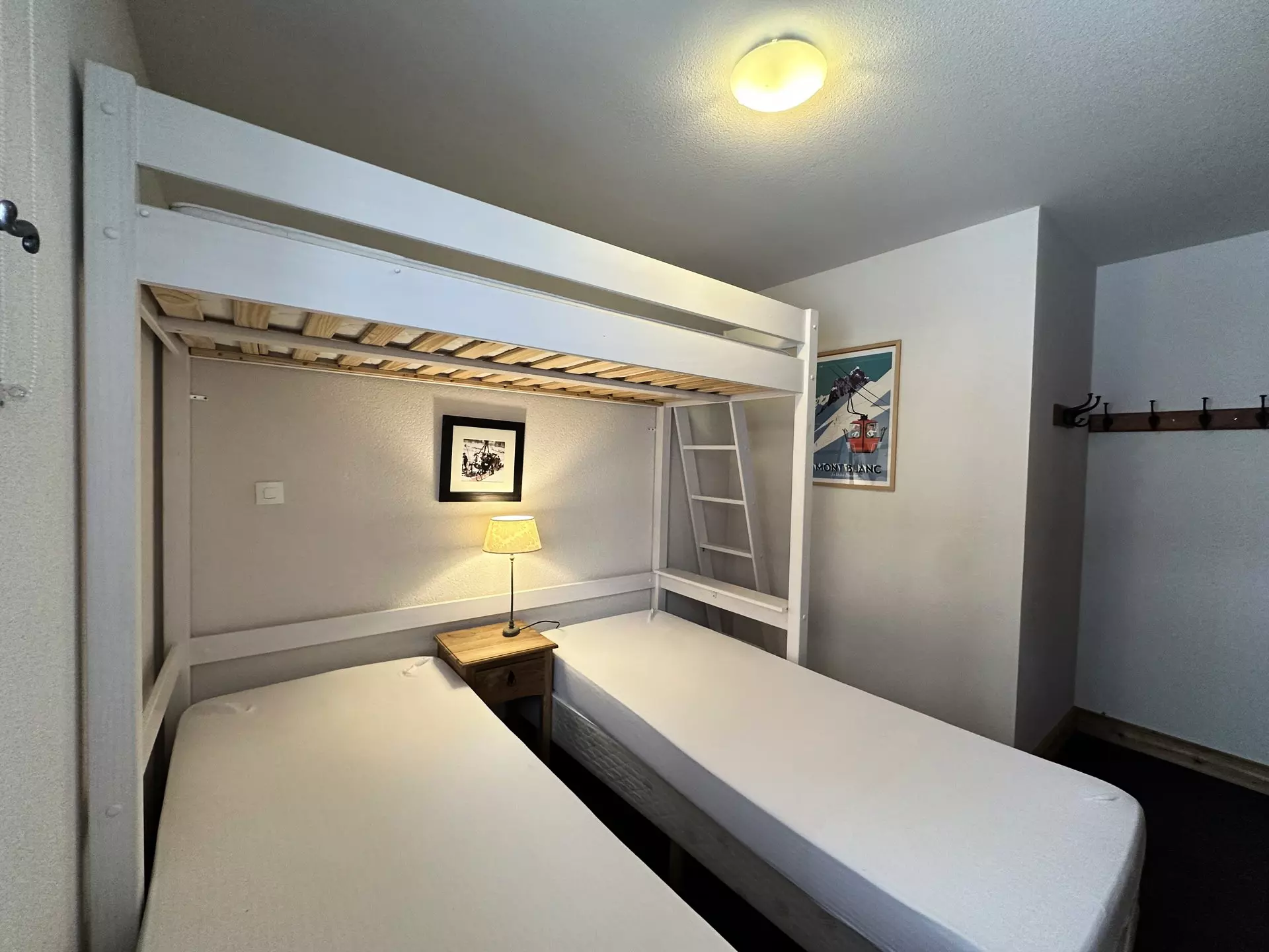 Bedroom No. 2 (carpeted floor): two single beds (80x200) and a single mezzanine bed (80x190), thus providing three additional beds (the upper bunk is not suitable for children under 6 years old)
