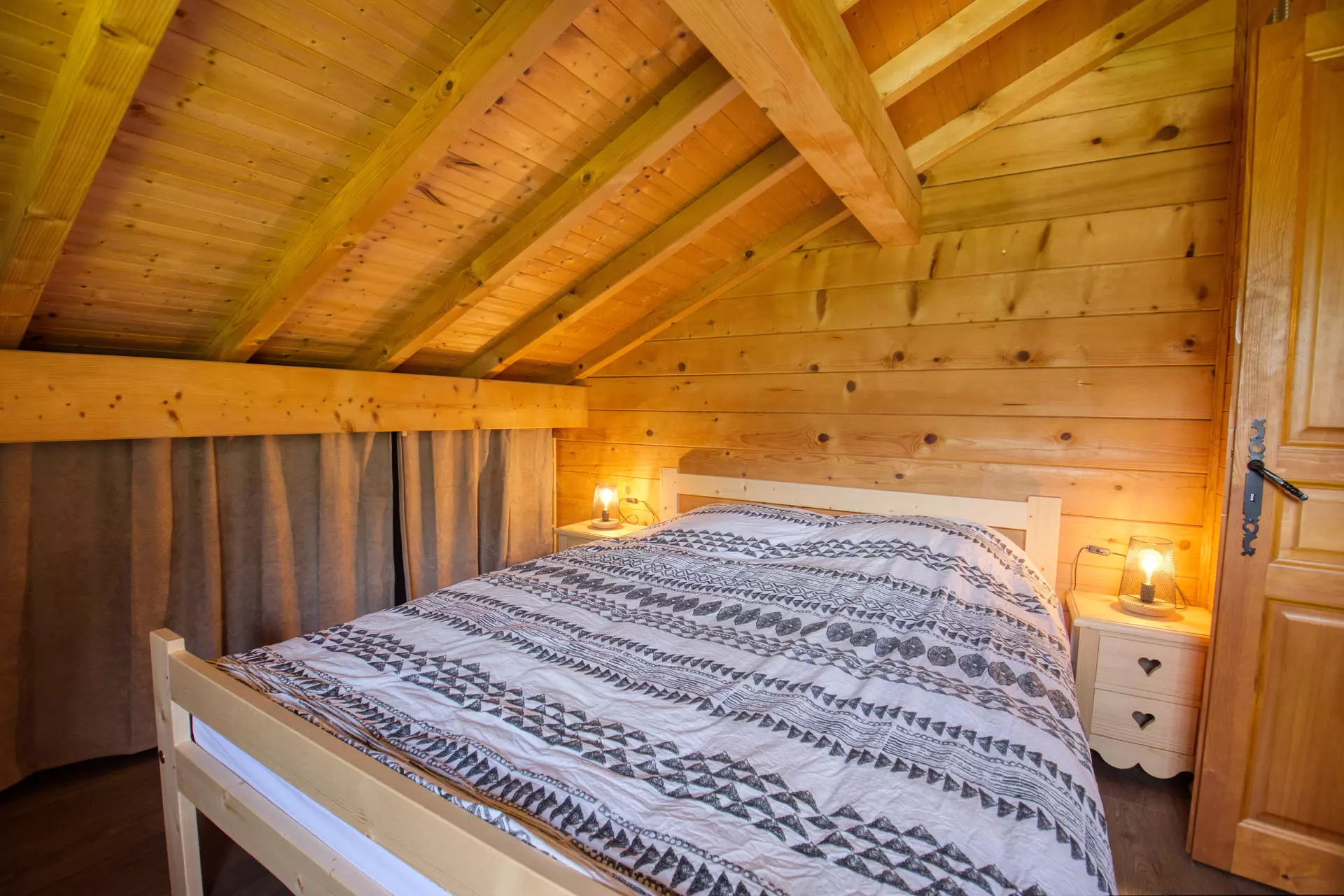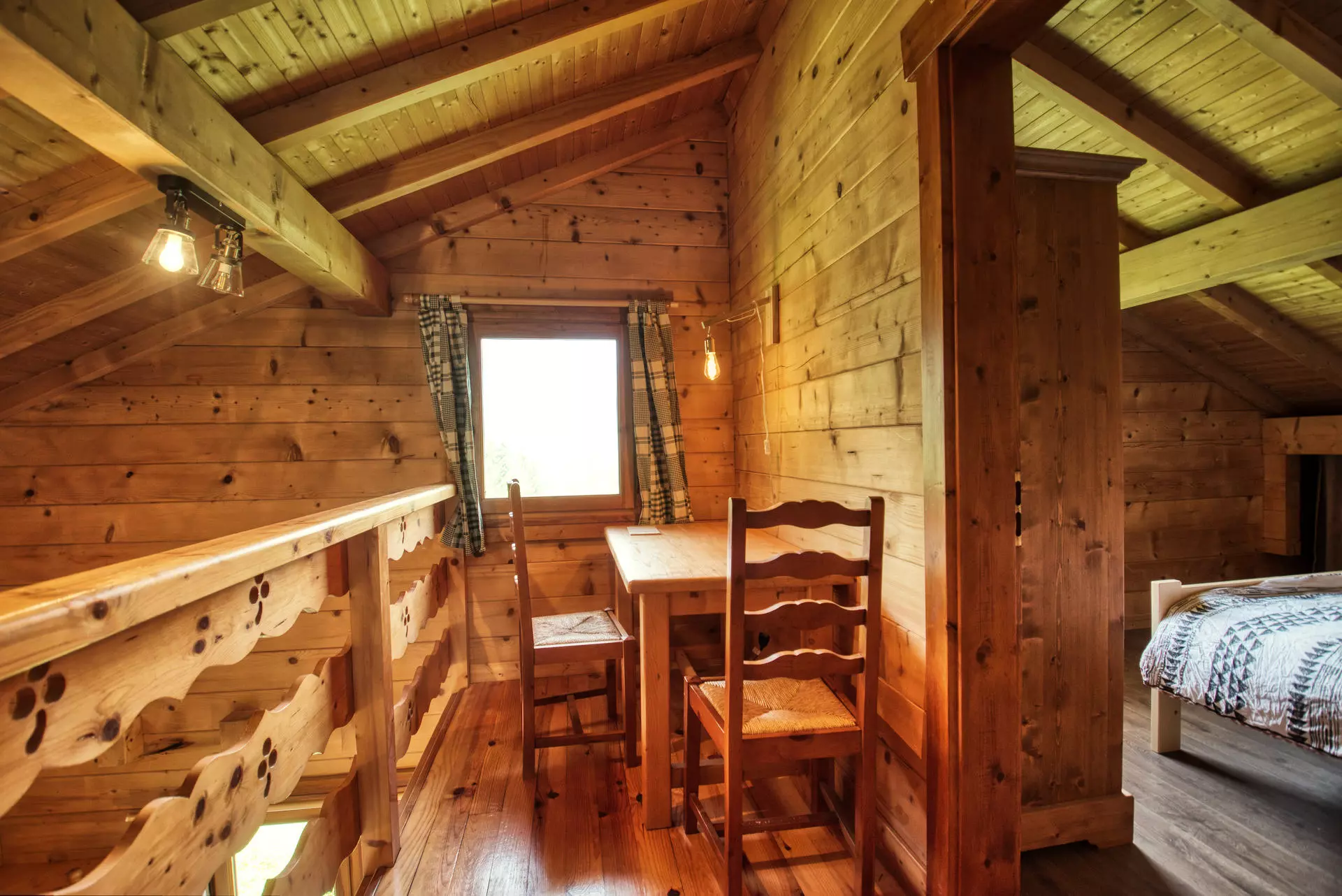 Upstairs level: two bedrooms with a 160 cm bed and a cabin with a 90 cm bed