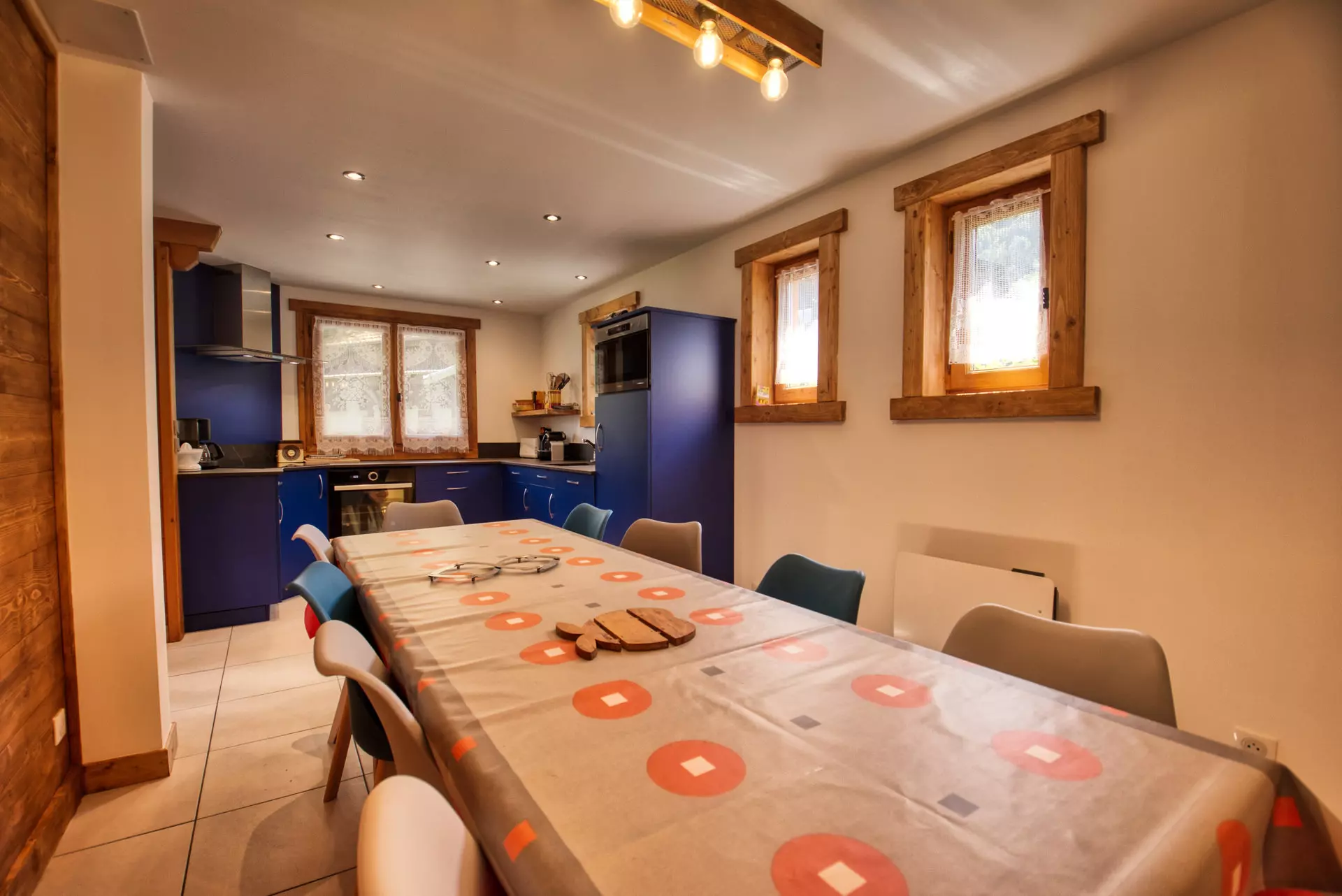 Oven - dishwasher - microwave - ceramic hob - extractor hood - electric coffee maker with filter - 1 Nespresso coffee maker - 1 kitchen scale - kettle - pressure cooker - toaster - 2 fondue sets - 2 raclette sets - crockery and cookware.