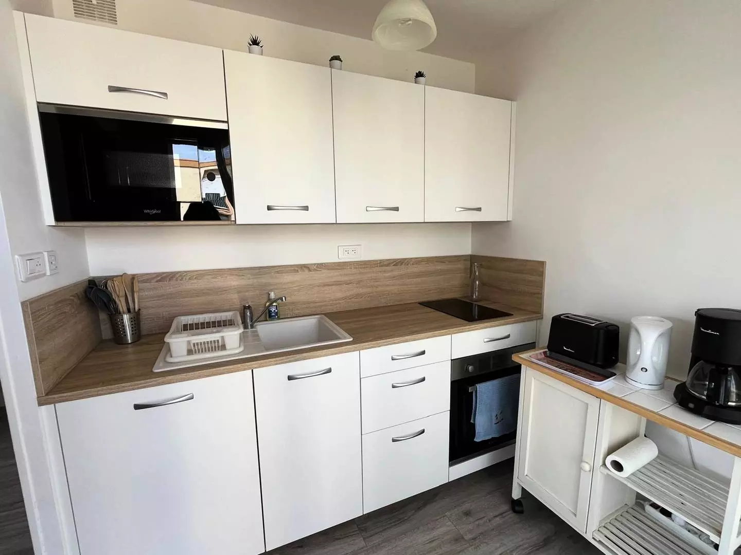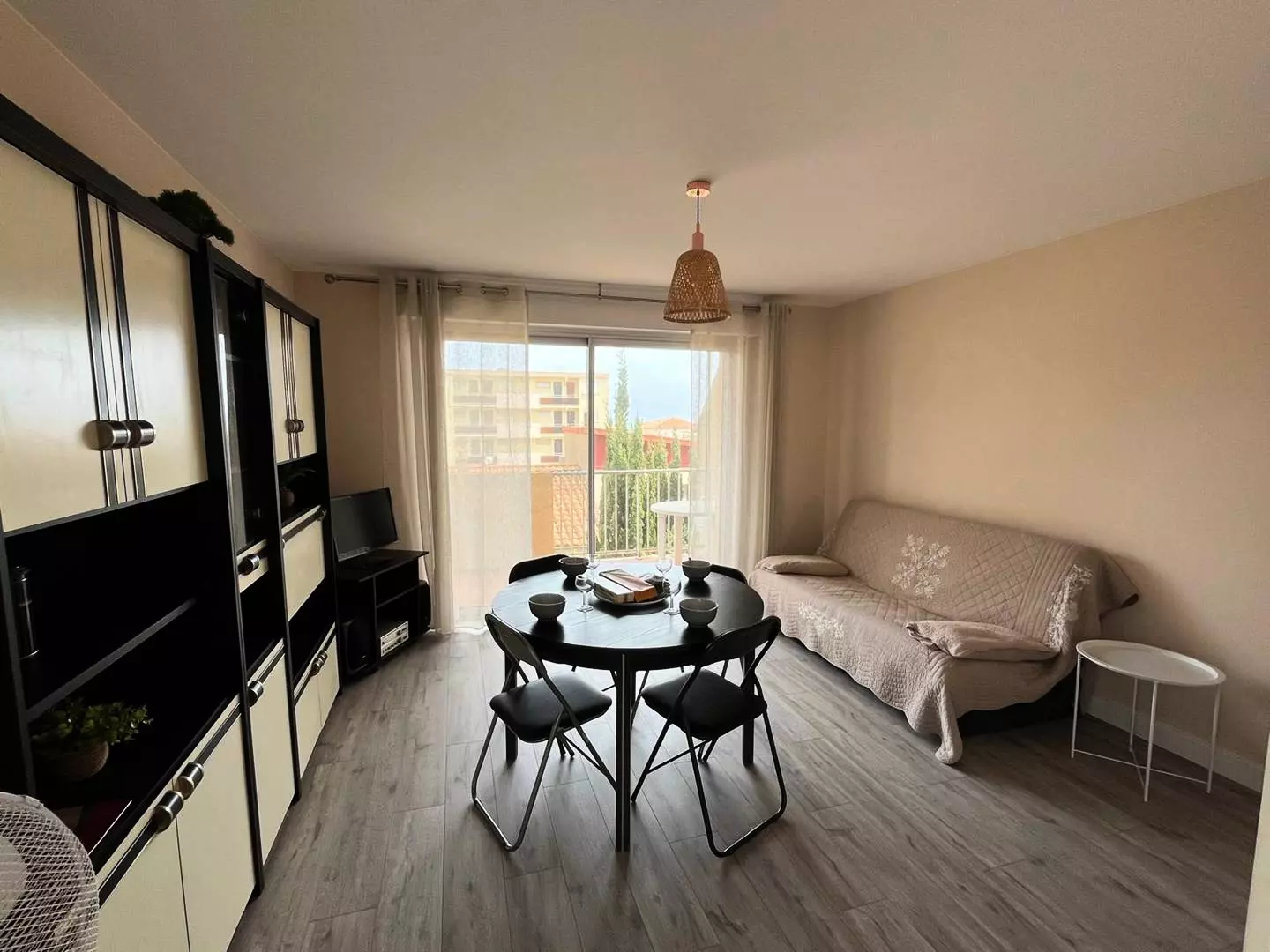 Residence in a quiet setting and close to shops and the beach, the apartment is composed of a main room with a sofa bed for 2 people, television and equipped kitchen area: induction hob, top refrigerator, microwave, oven.