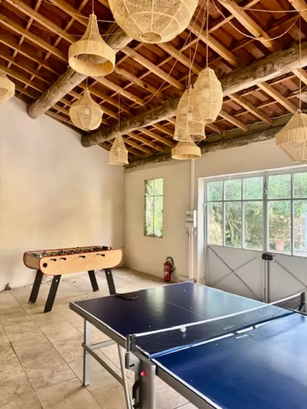 The exterior with its 7700m2 park, its large swimming pool, its pétanque court, the barbecue, the volleyball court as well as the games room with table football, ping-pong, darts is the ideal place to spend pleasant moments with friends or family.