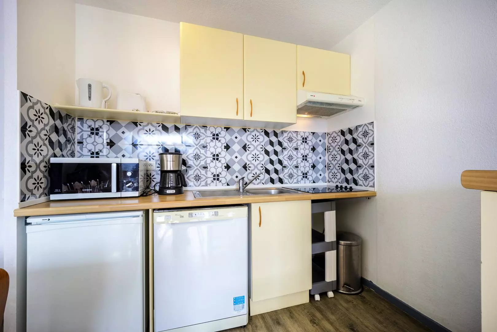 Kitchen open to the living room (sleeps 2 on the sofa)