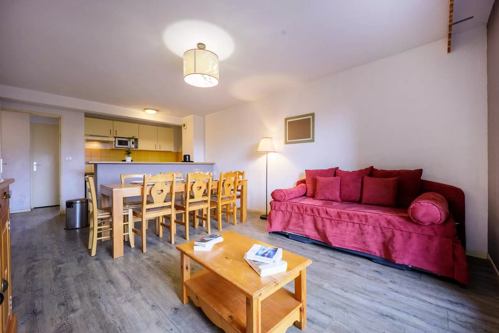 - kitchen open to living room (sleeps 2 on the pull-out sofa bed)