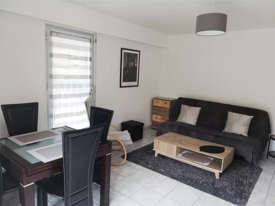 -A living room with convertible sofa and armchairs, TV, dining table for 4 people;