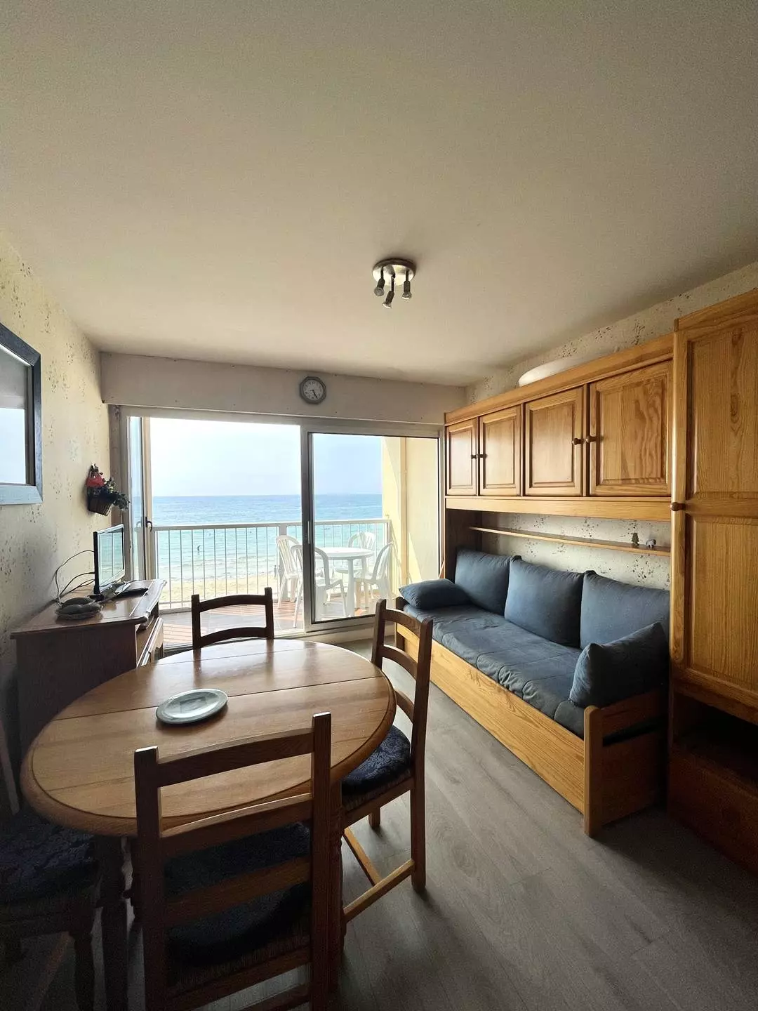 -A living room with a sofa bed (2 pull-out beds, 9 * 190cm), dining table for 4 people, TV, sofa, bay windows with balcony access;