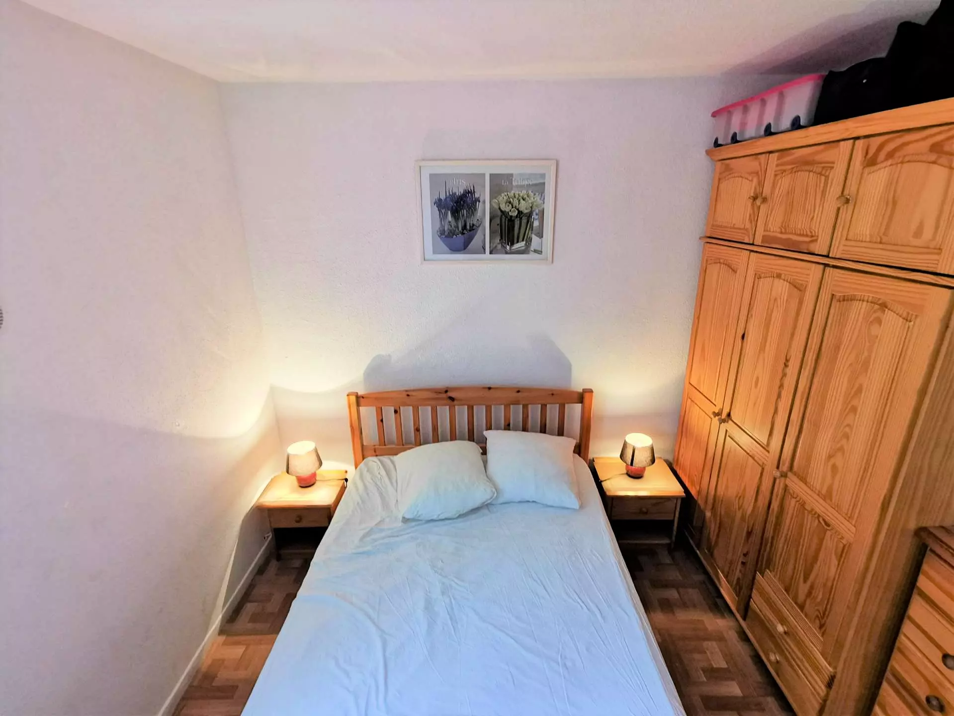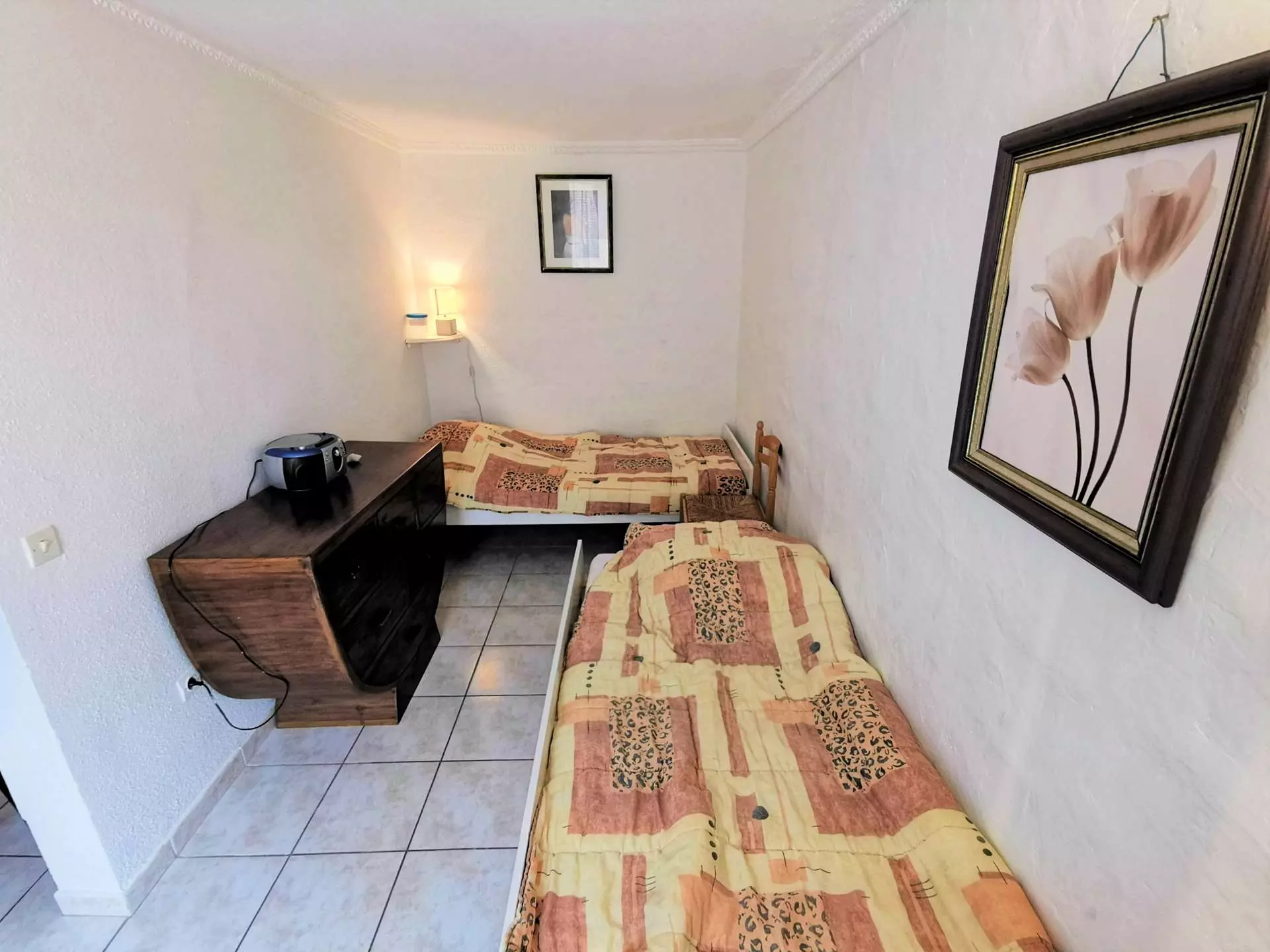 - A sleeping area with two single beds closed by a removable partition