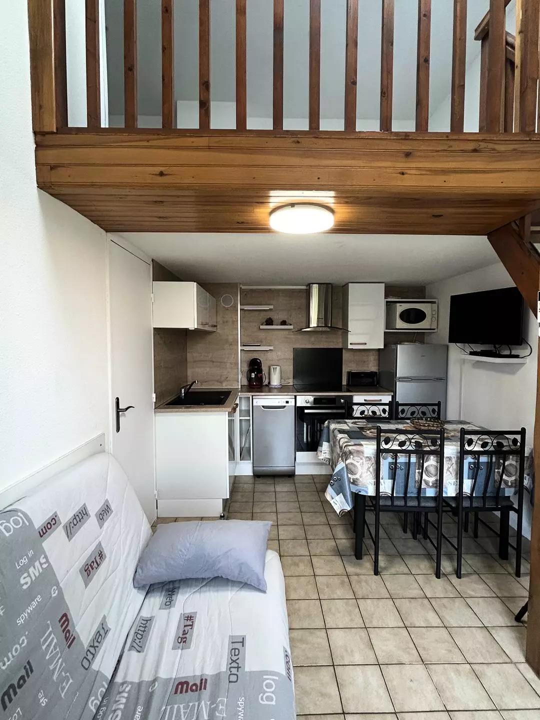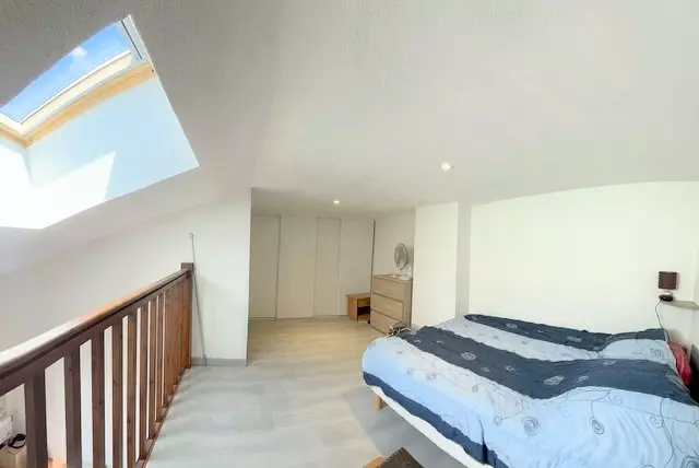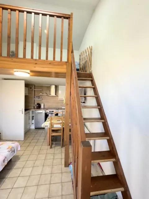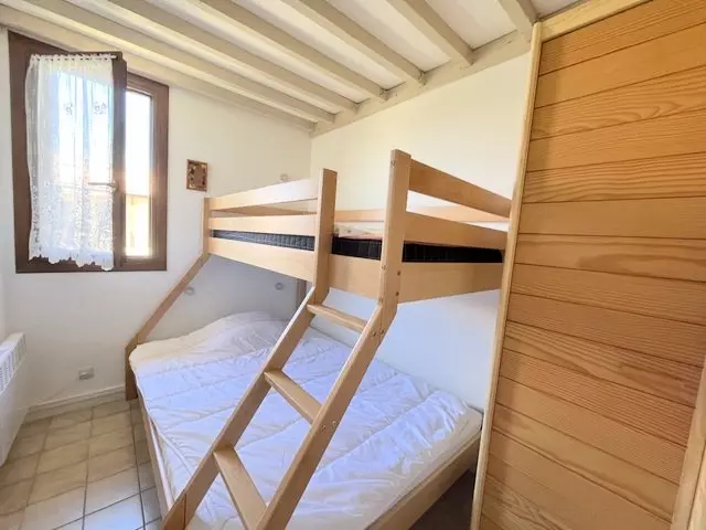On the mezzanine a 140 cm bed and a bedroom with bunk beds.