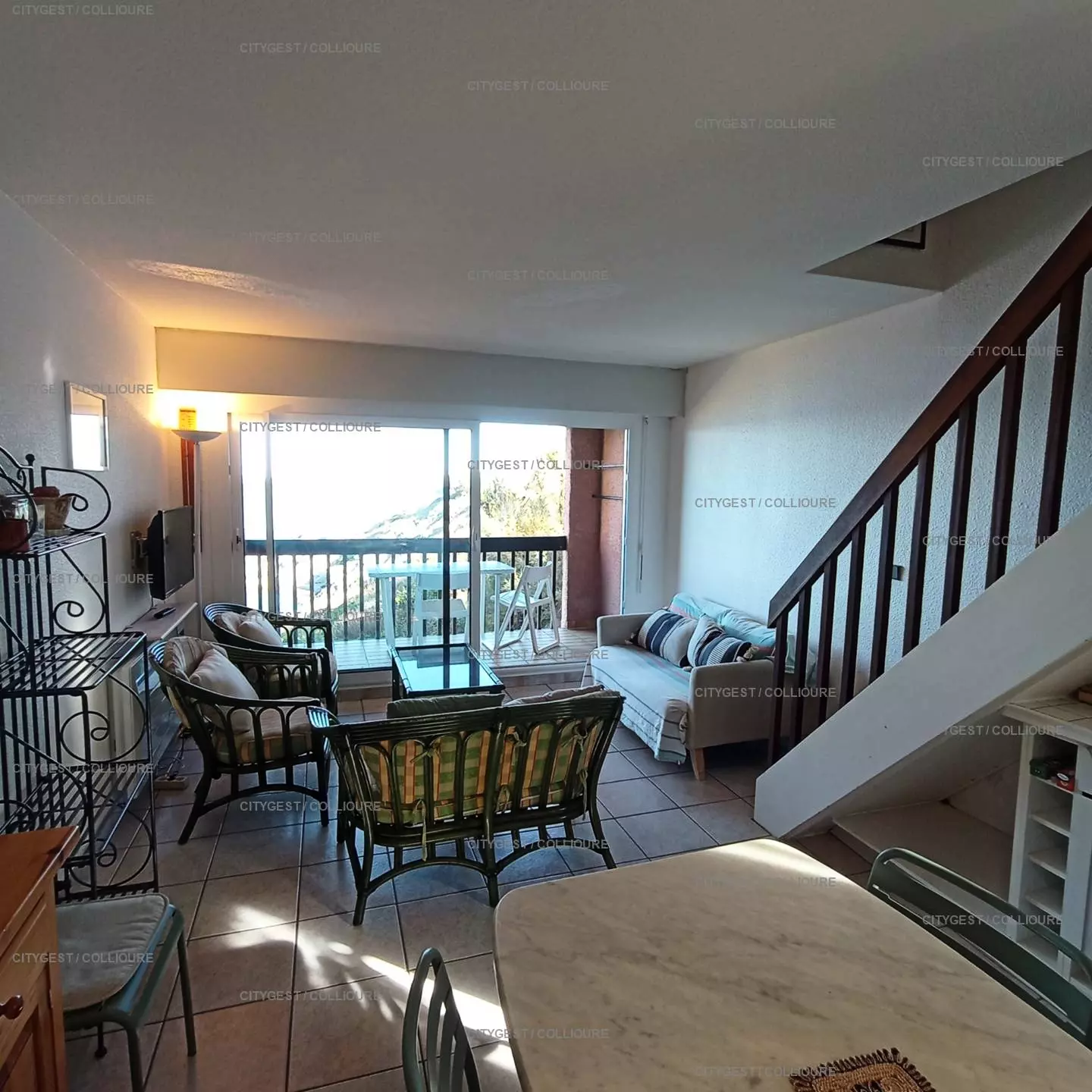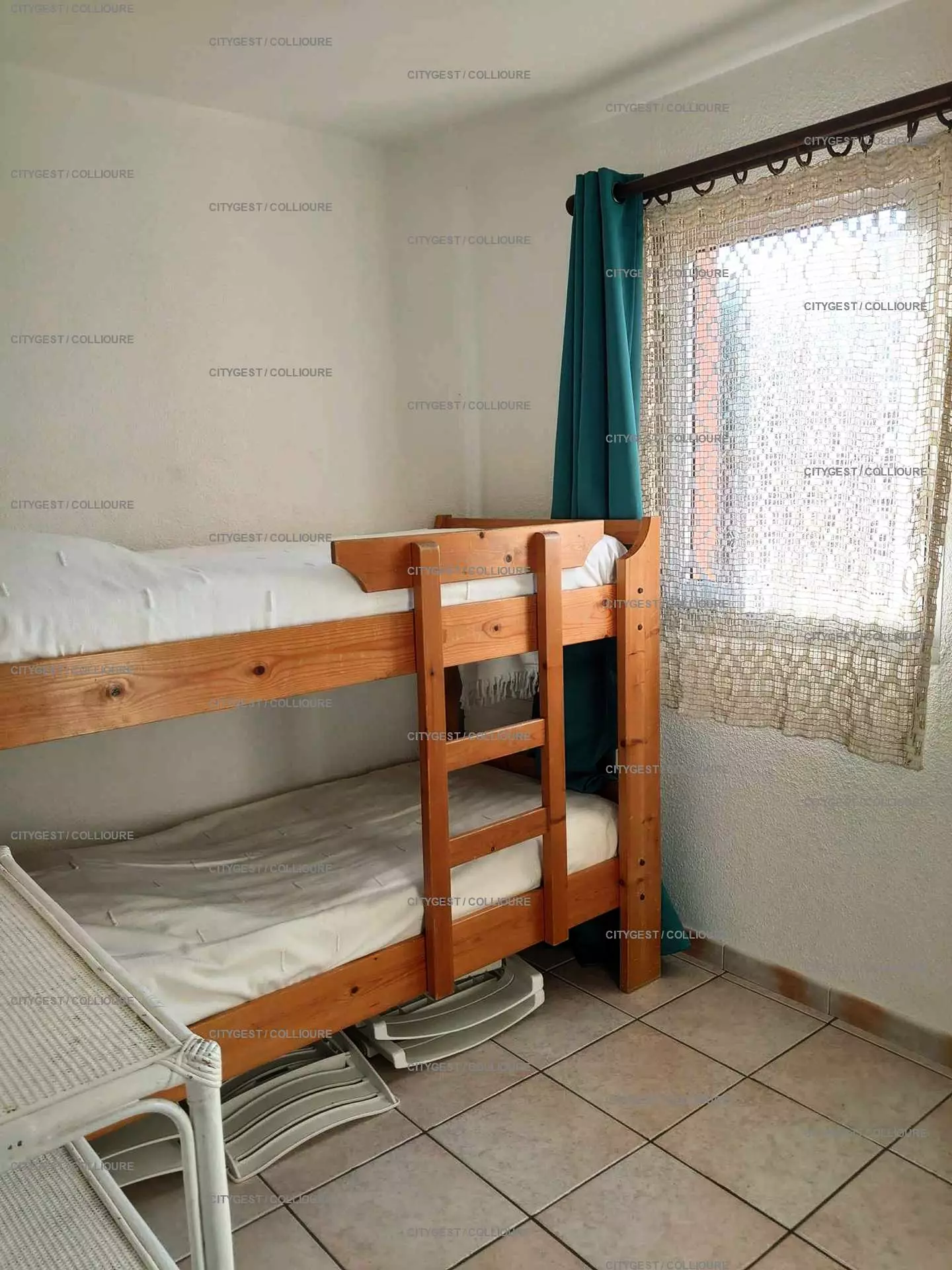 6OLI142 - Residence l'OLI - About 50m from the beach, 700m from the town center of Port-Vendres and 1.2 km from the town center of Collioure. Pleasant 4-room apartment with sea view of about 65m2 with private parking. It consists of an entrance hall, a bedroom with 2x90 cm bunk beds, a kitchen open to the living room with dishwasher, microwave, induction hob, oven, a loggia, a TV and a separate toilet. Upstairs, 2 bedrooms, one with a terrace, each with a 140 cm bed, a bathroom with washing machine and toilet.