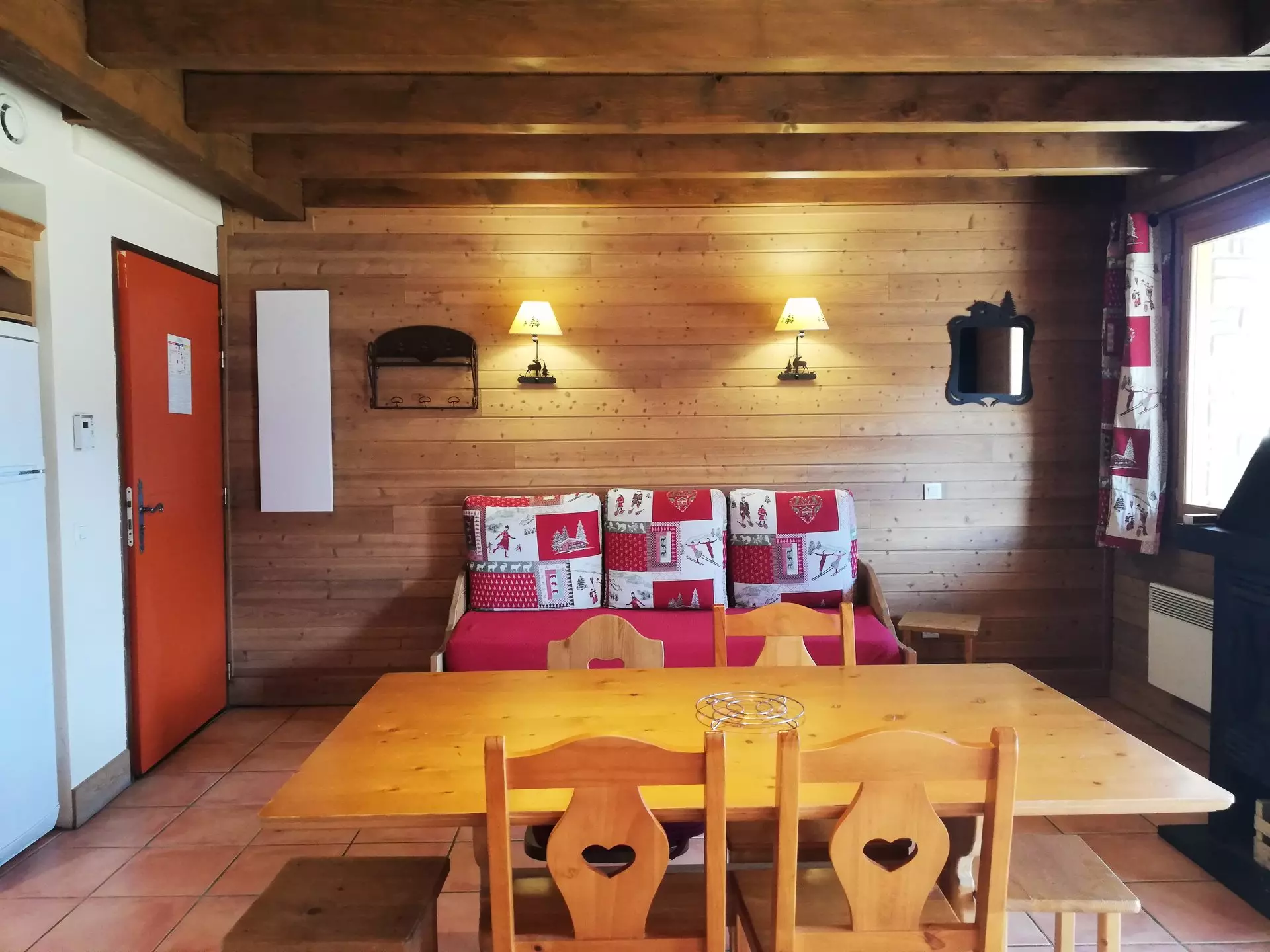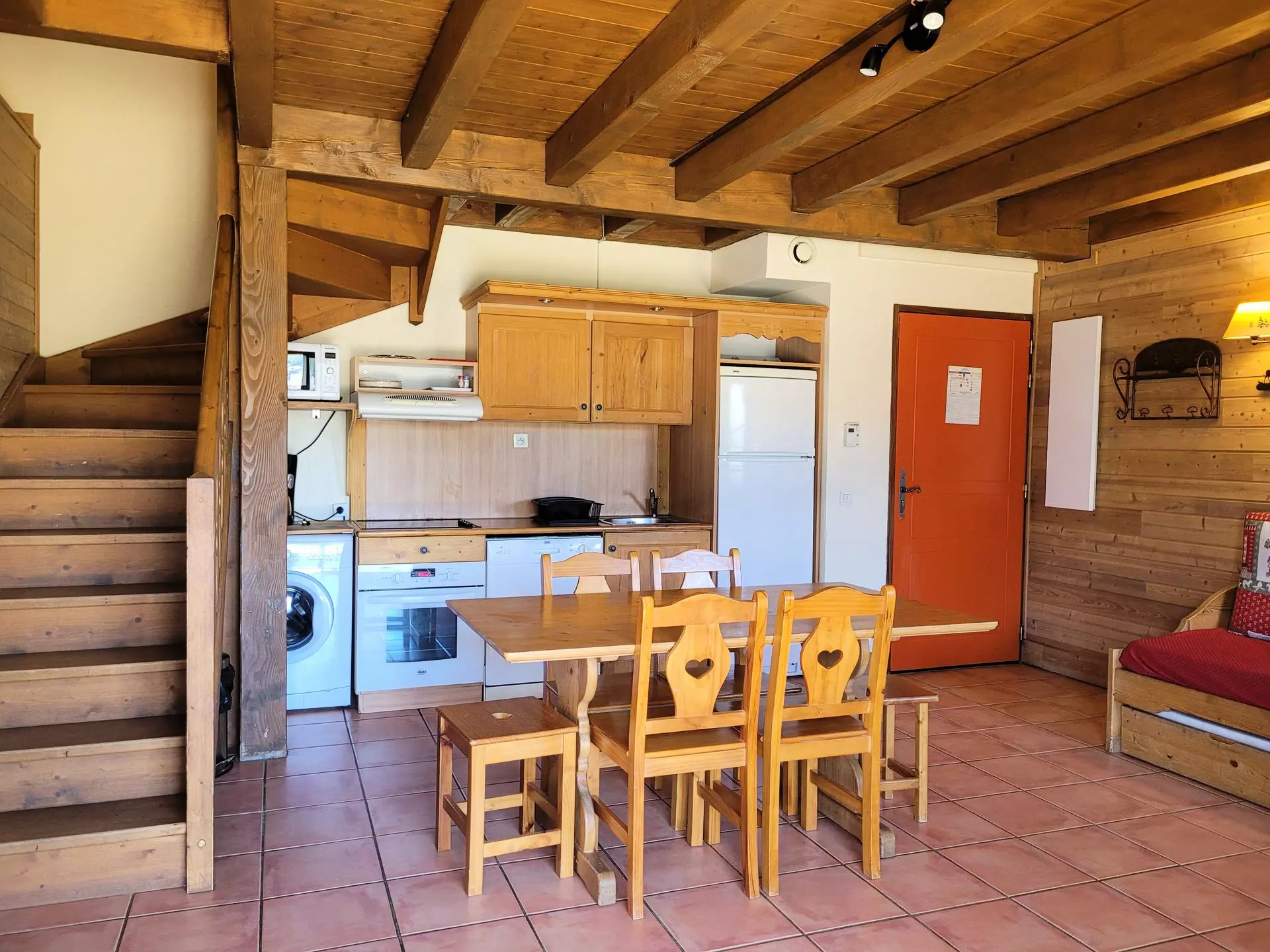 1/2 chalet on 2 levels, 3-room type for 4/6 people, approximately 49m²; East facing with terrace and balcony, beautiful view of the mountains.