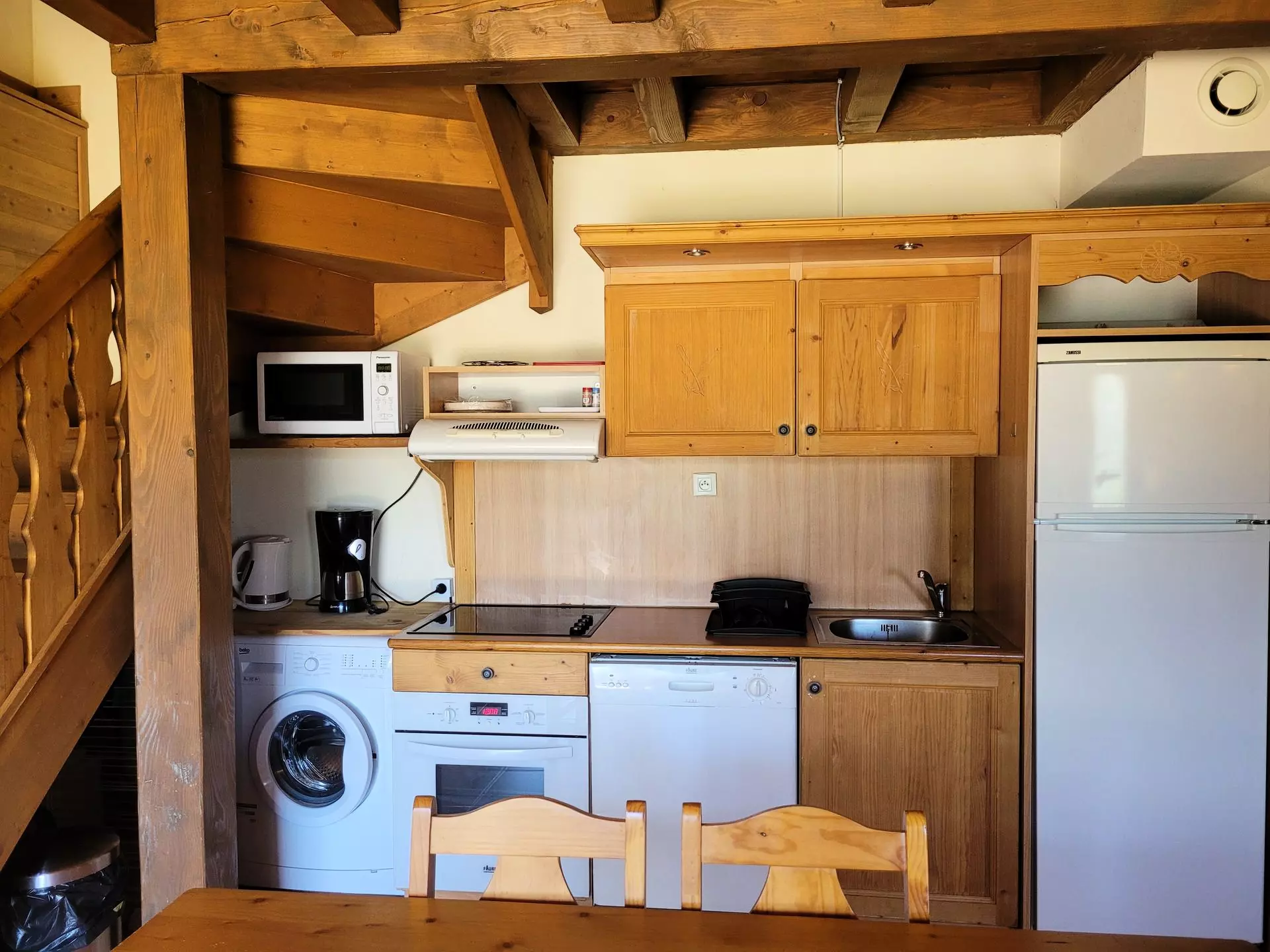 * Kitchen area: ceramic hob, oven, fridge/freezer, dishwasher, washing machine, microwave, coffee maker, storage cupboards;