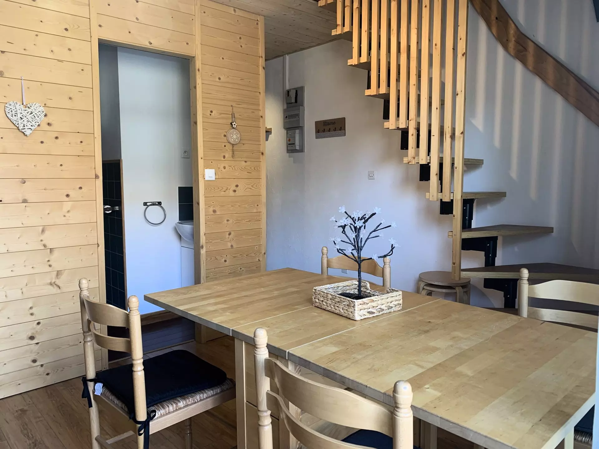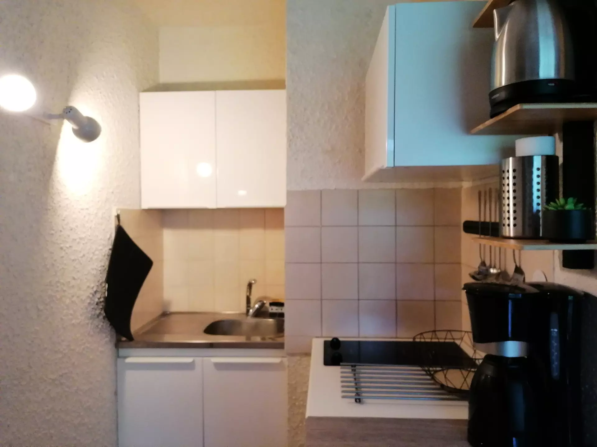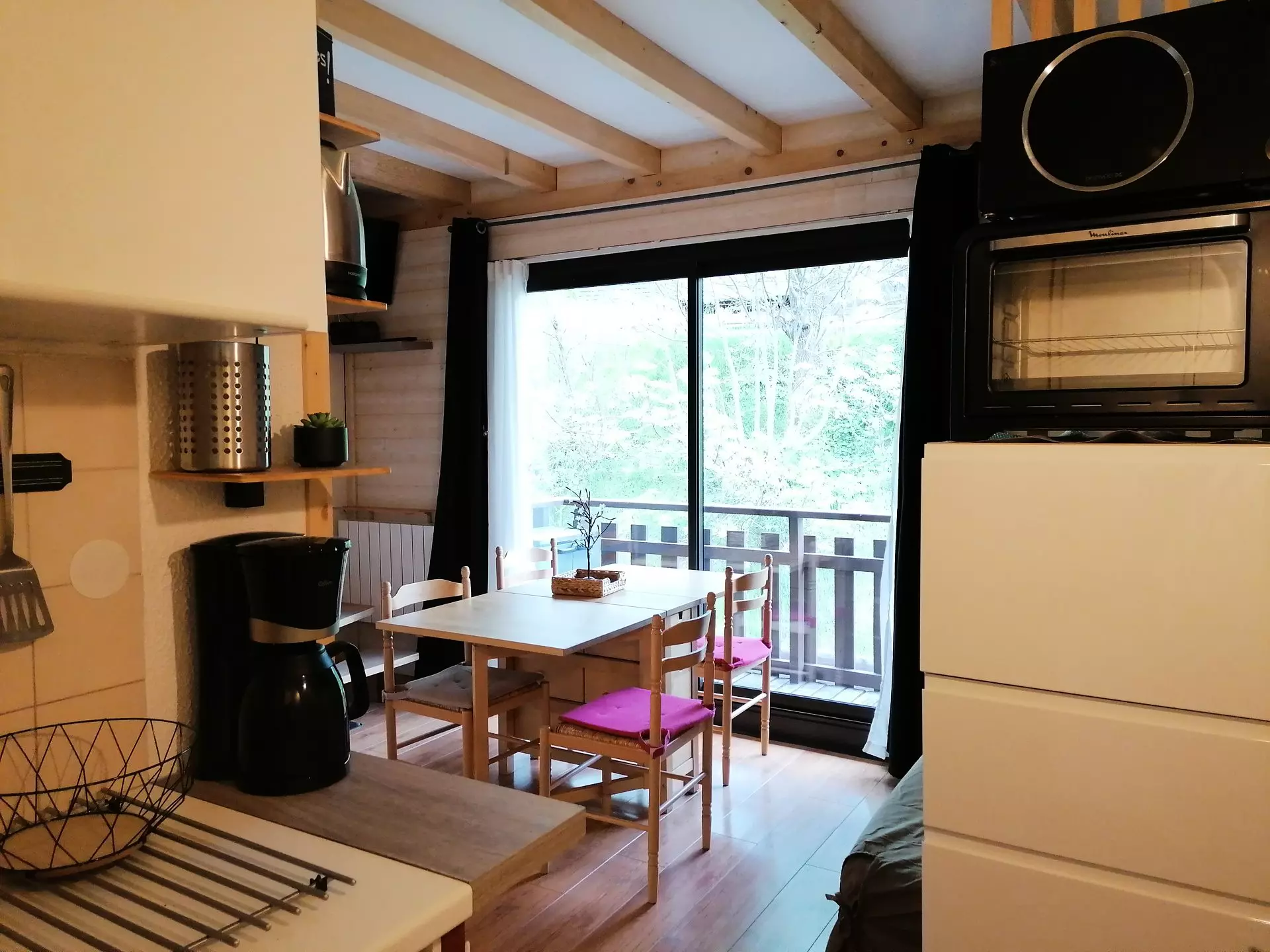 * Kitchen area: refrigerator, 2 ceramic hobs, oven, coffee maker, kettle, toaster, raclette machine, storage;