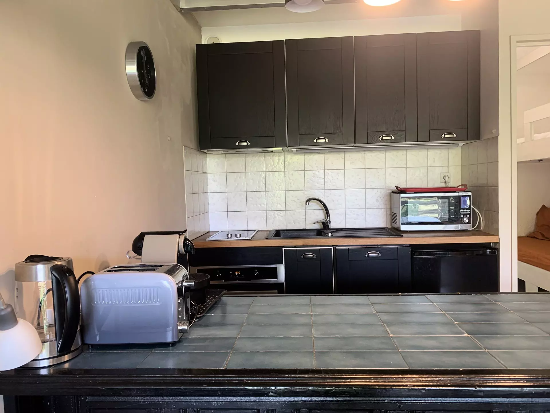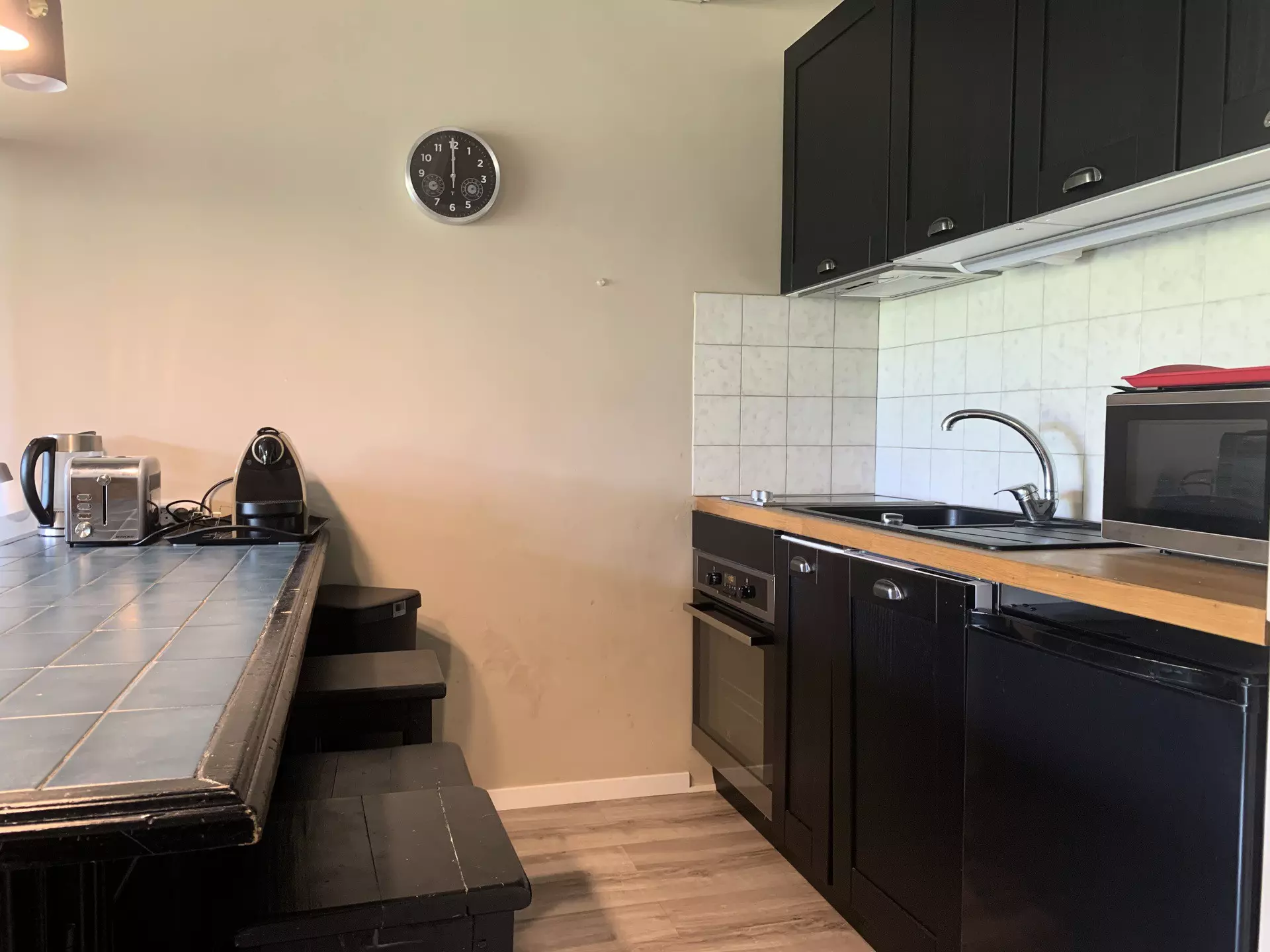 * Kitchen area: oven, microwave, refrigerator, freezer, 2 ceramic hobs, dishwasher, Nespresso coffee machine, numerous cupboards;
