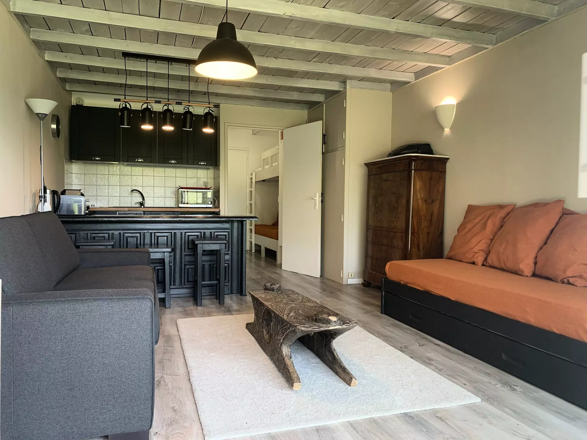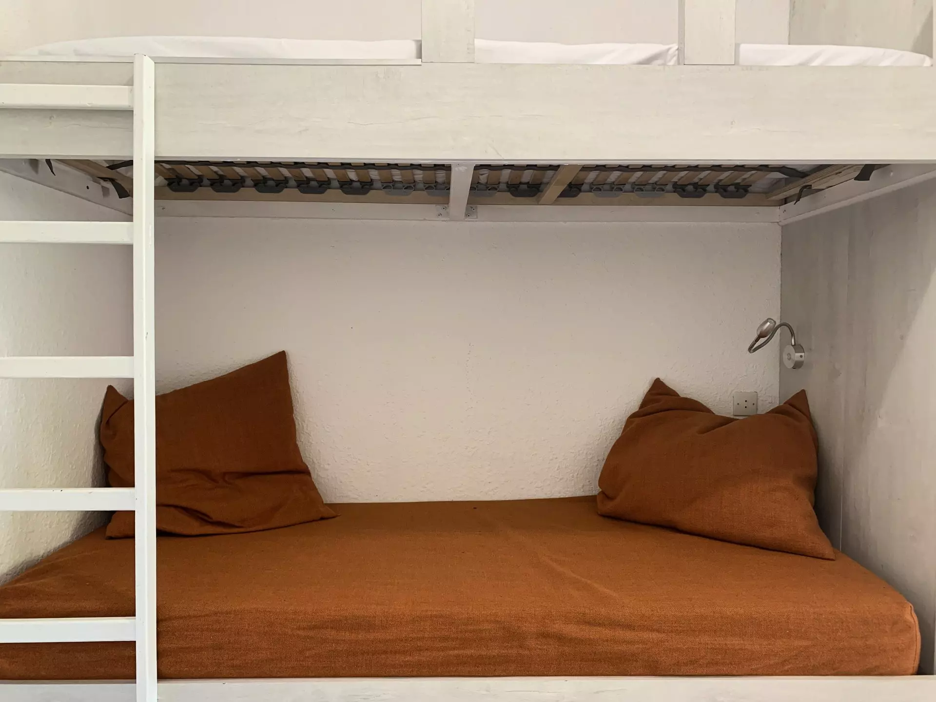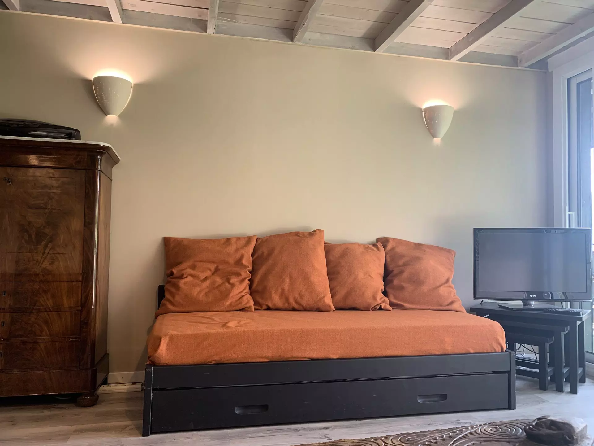 * Living room: 2 single beds, 1 pull-out bed, TV with decoder, closet, balcony access, bright, spacious;