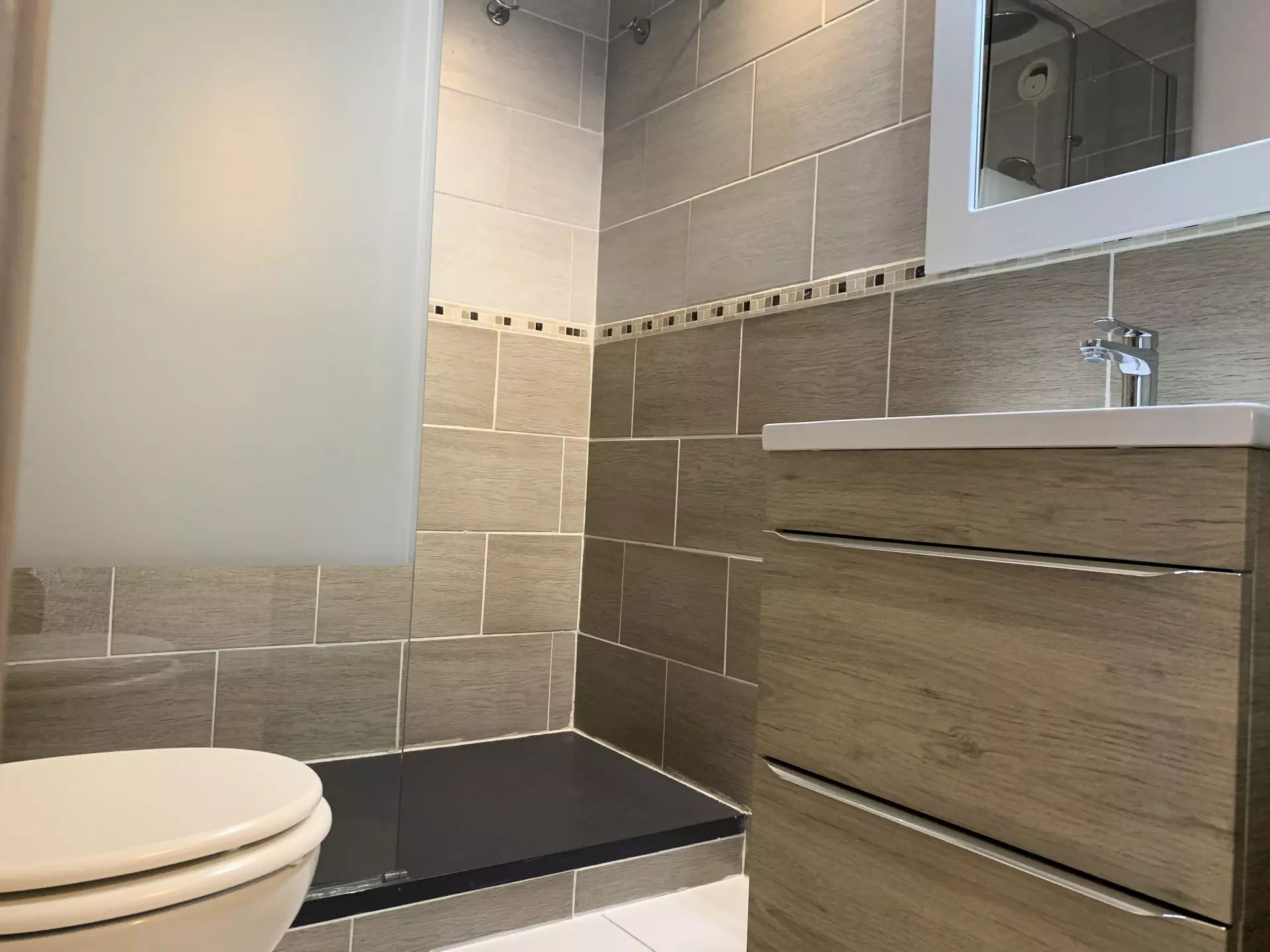 * Shower room with walk-in shower and WC