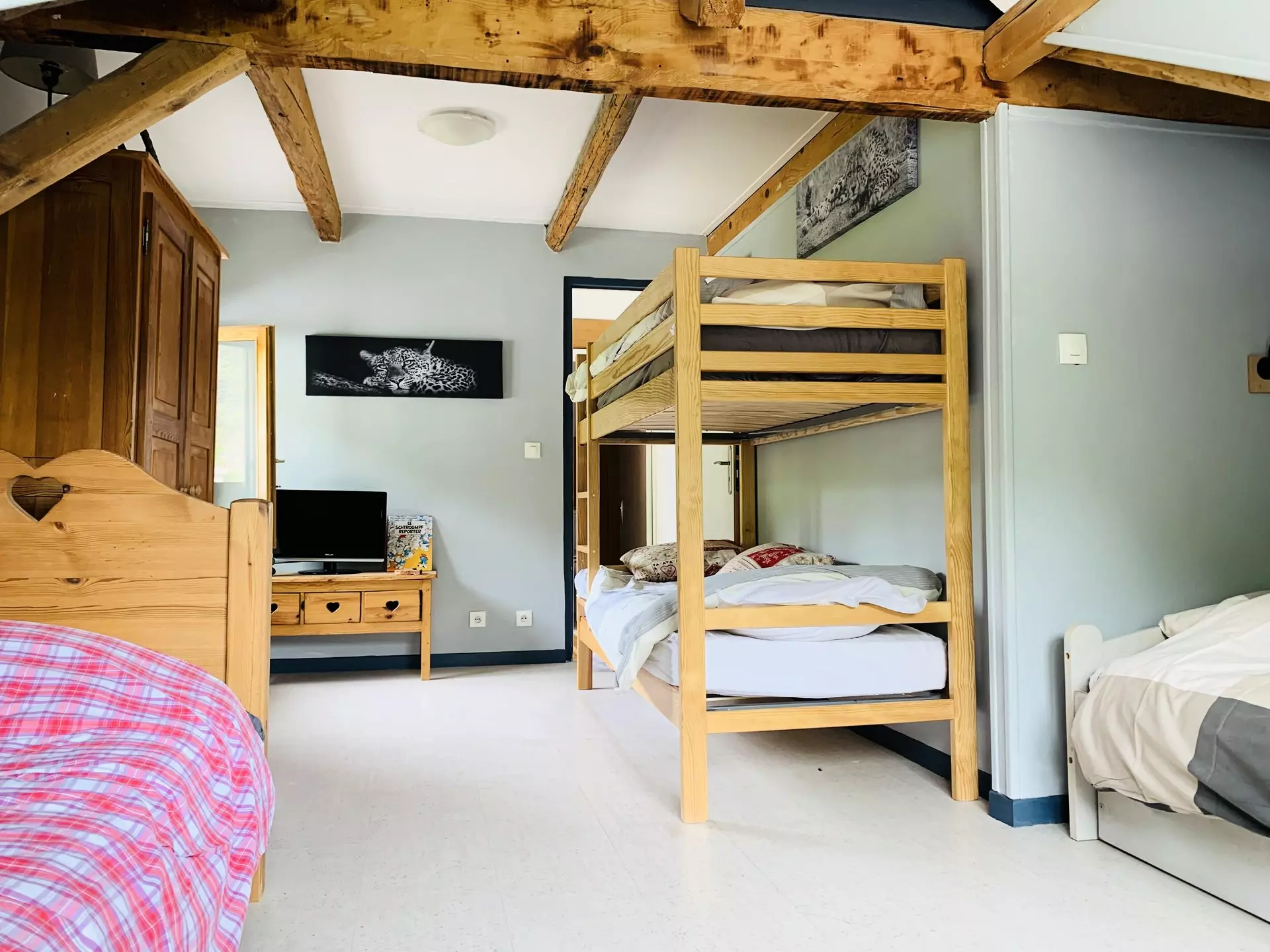 * Bedroom 4: 2 single beds, 1 pull-out bed, 1 bunk bed set;