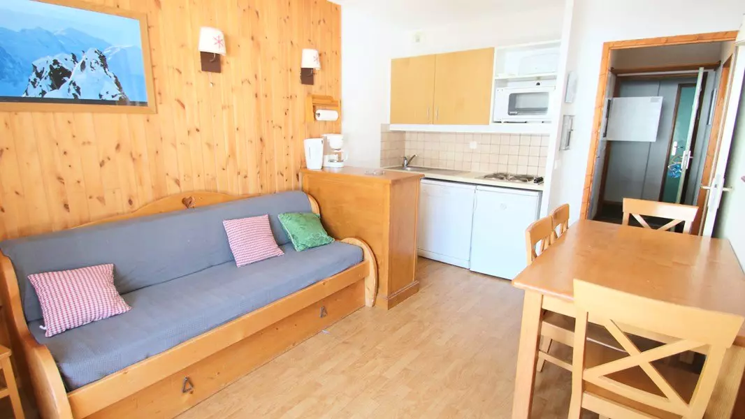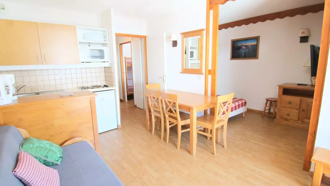 In the heart of the slopes, this lovely, high-quality apartment with a balcony is furnished and equipped for 4 to 6 people. The Le Parc Aux Etoiles residence has a swimming pool and sauna.