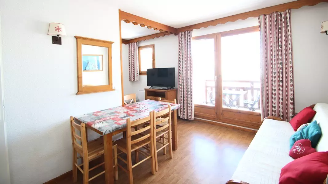 Vacation rental in the Puy-Saint-Vincent ski resort, an apartment at 1,800m with a north-facing balcony, furnished and equipped for 4/6 people. RESIDENCE LE PARC AUX ÉTOIDS SWIMMING POOL AND SAUNA.