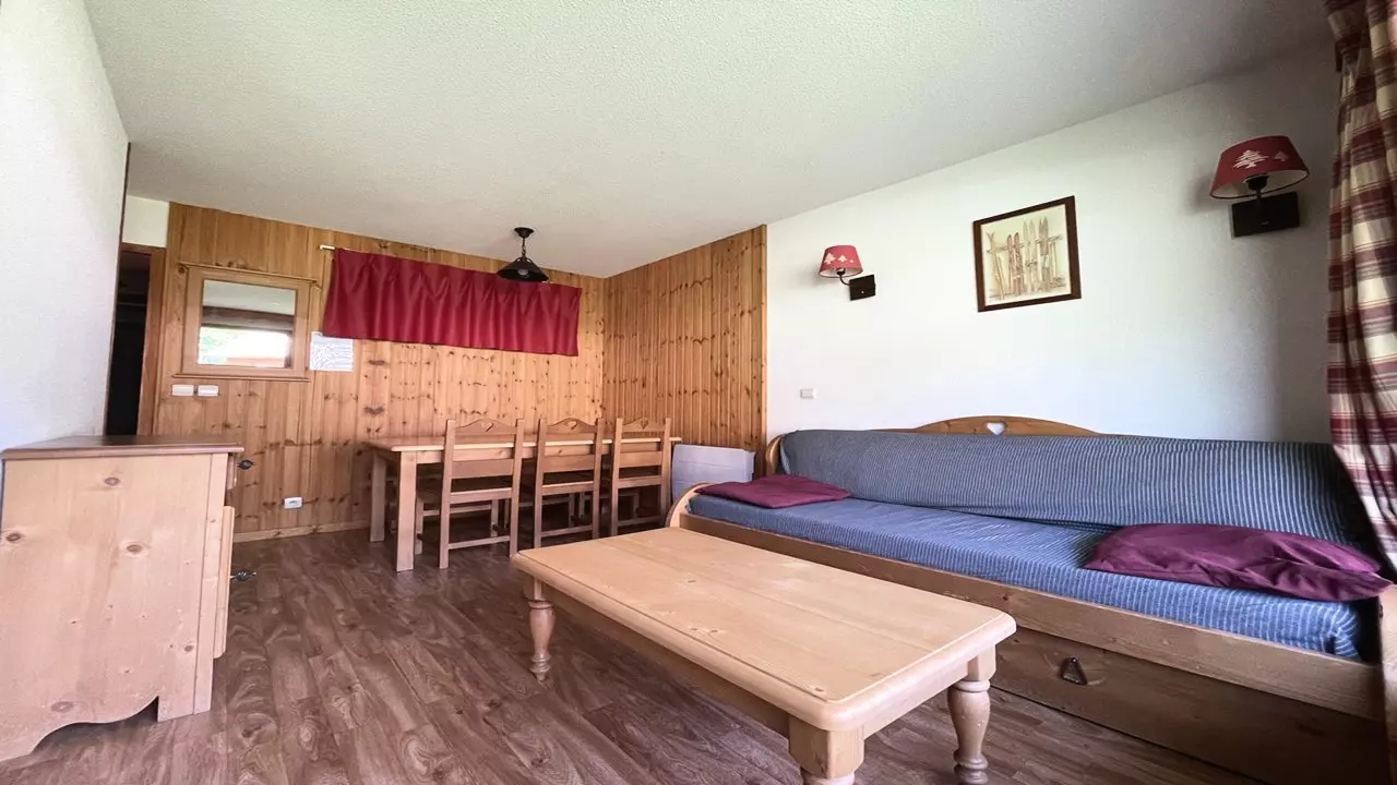 - Living room with convertible sofa bed (2/80x190 or 160/190), dining table, flat screen TV and balcony equipped with a table and two chairs.