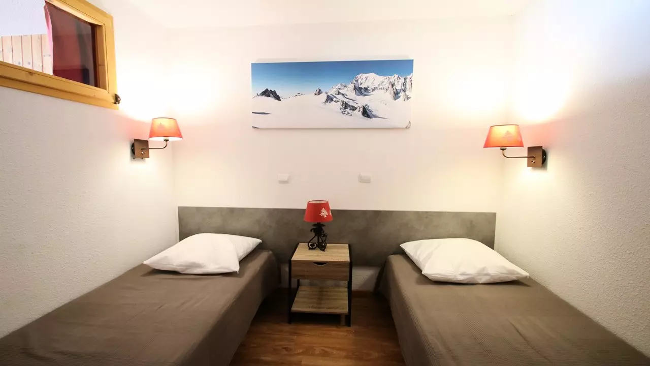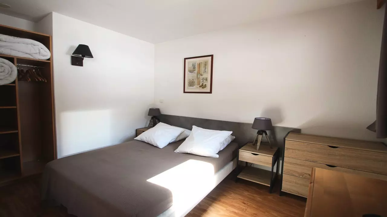 - Sleeping arrangements: one bedroom with a double bed (140x190), one cabin bedroom with two single beds (80x190) and storage shelves. Beds equipped with duvets and 60x60 pillows.