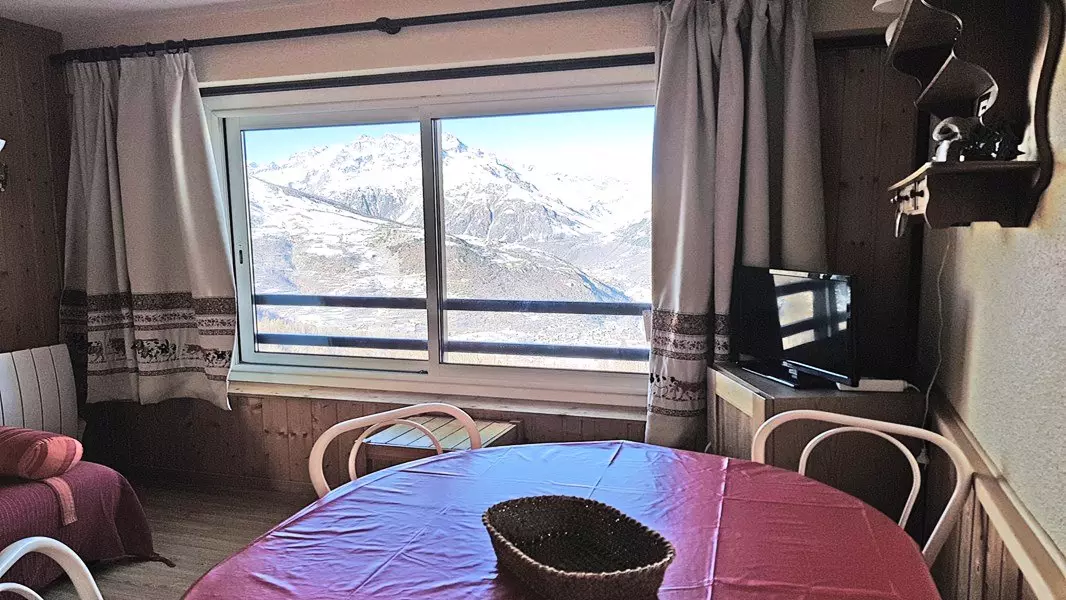 - Mountain corner with bunk beds. A single bed on top and a double bed on the bottom.