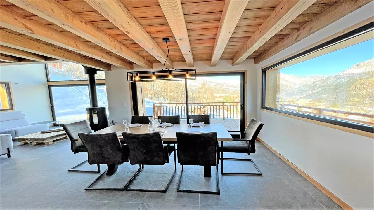 Breathtaking views of the village and the Écrins mountain range. 350m from all amenities and 600m from the ski slopes. 4 bedrooms, 3 bathrooms, large terrace overlooking the garden. Chalet "Le Tou" is ideal for families or groups of friends; this new, fully equipped chalet for 12 people will offer you all the comfort you need to enjoy your vacation.