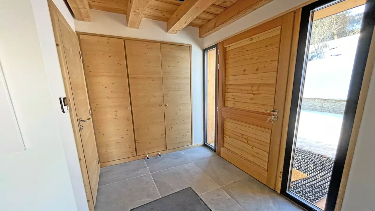 Large terrace overlooking the garden (ideal for sledding or building a snowman). The ski room is located in the basement of the chalet, accessible from both the inside and outside. A washing machine is available.