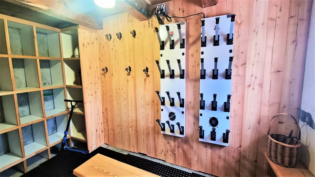 The "ski room" area is in the basement of the Chalet and is only accessible from the outside.