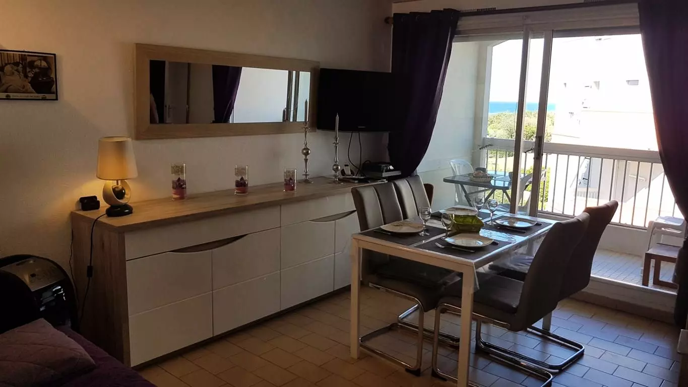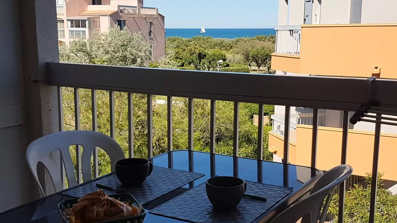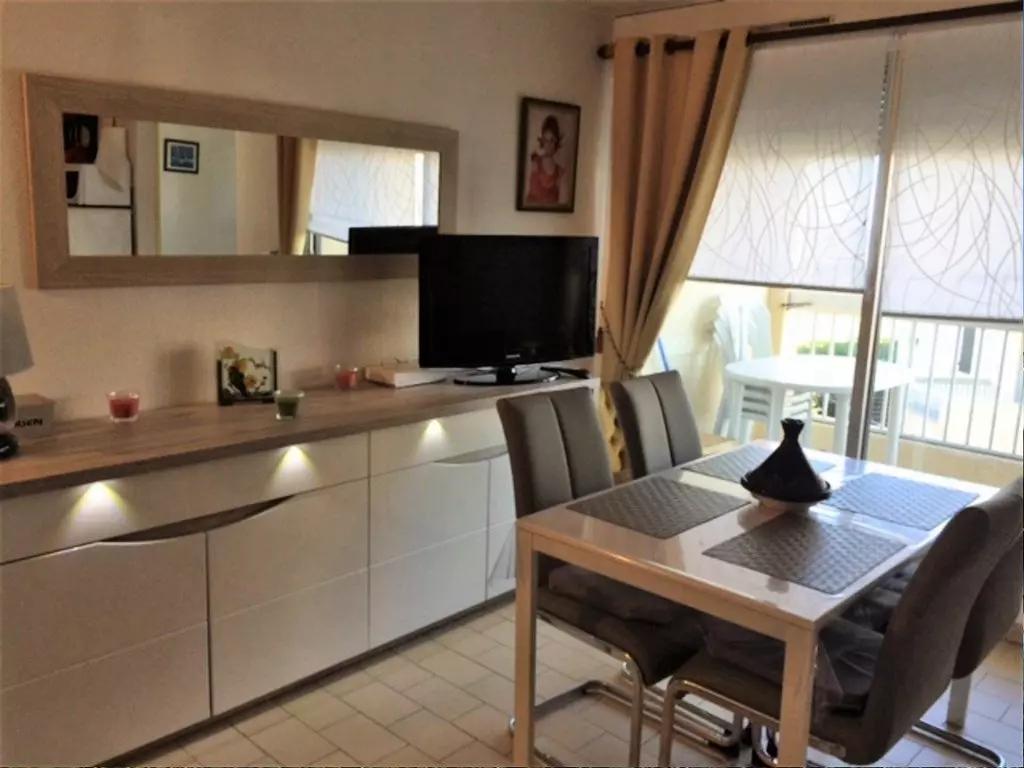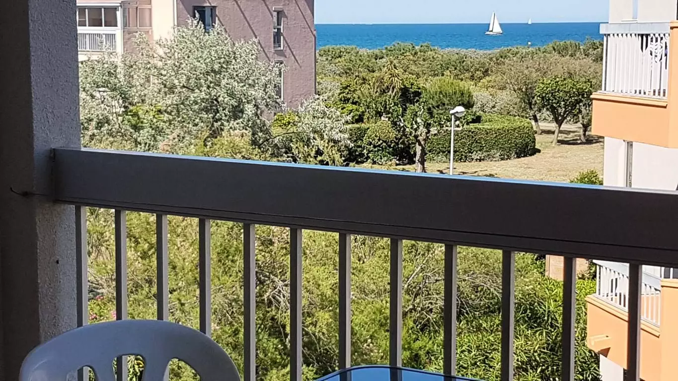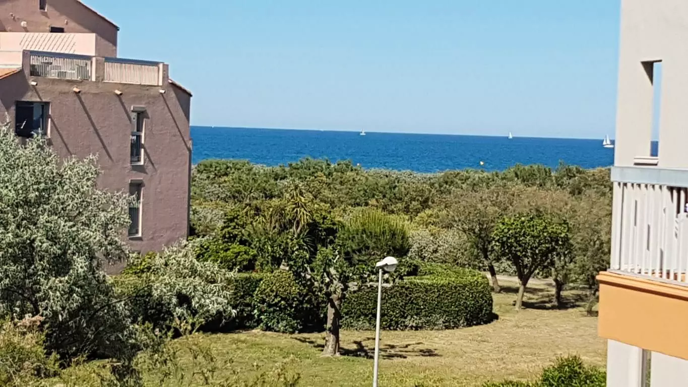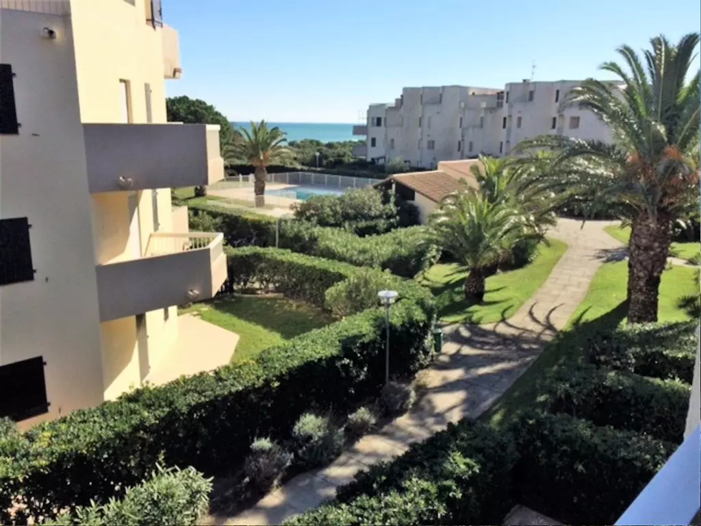 Secure residence LES FREGATES - Very pleasant 2-room cabin located on the 2nd floor with sea view, quiet residence on the seafront with shared swimming pool, parking, green spaces: DIRECT ACCESS TO THE BEACH!