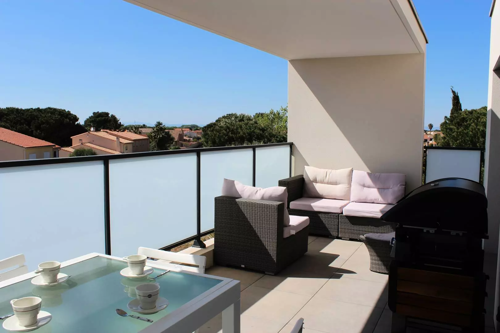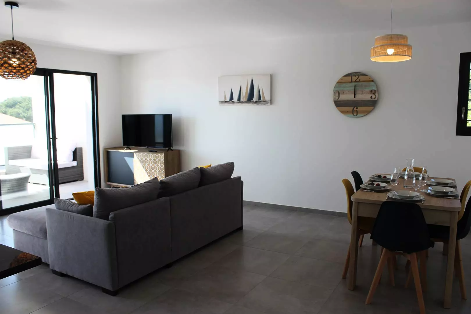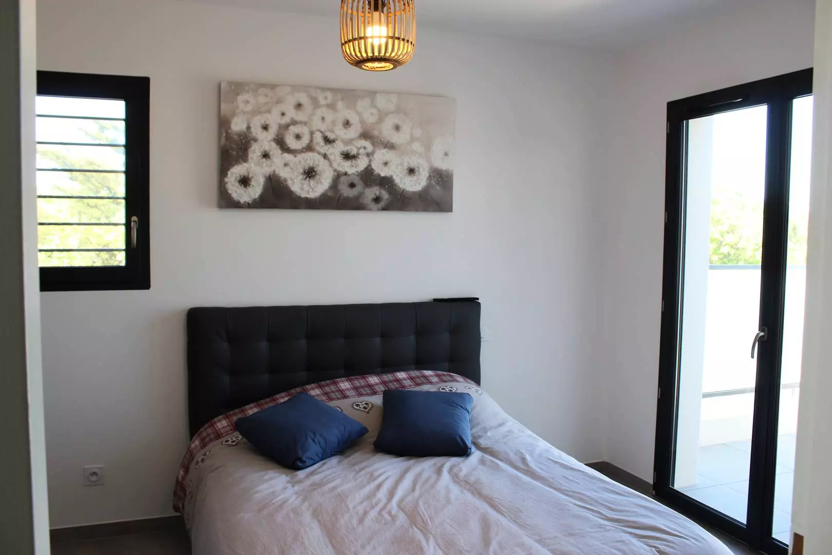 The apartment on the 2nd floor, designed as a crossing, consists of a bright living room with a fully equipped kitchen area: dishwasher, induction hob, fridge freezer, multifunction oven, microwave... all opening onto a beautiful and large terrace of 18m2.