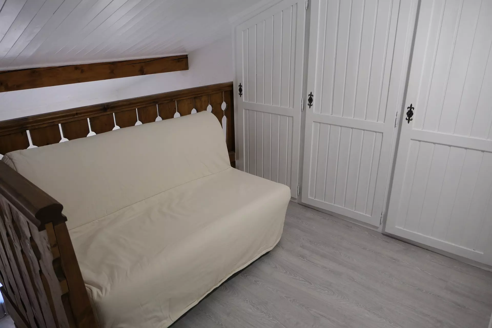 - Sleeping area on the mezzanine with sofa bed (140*190).