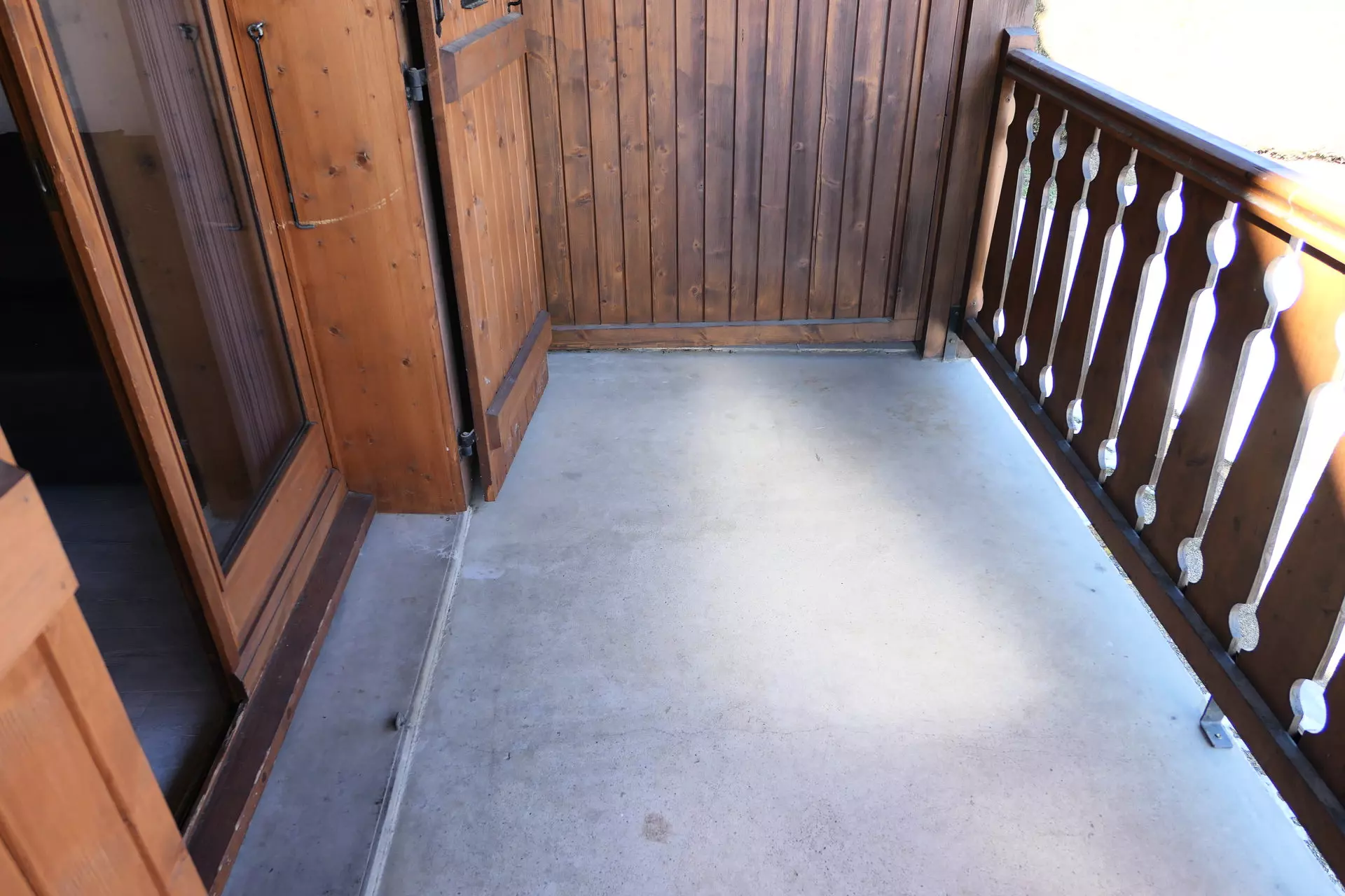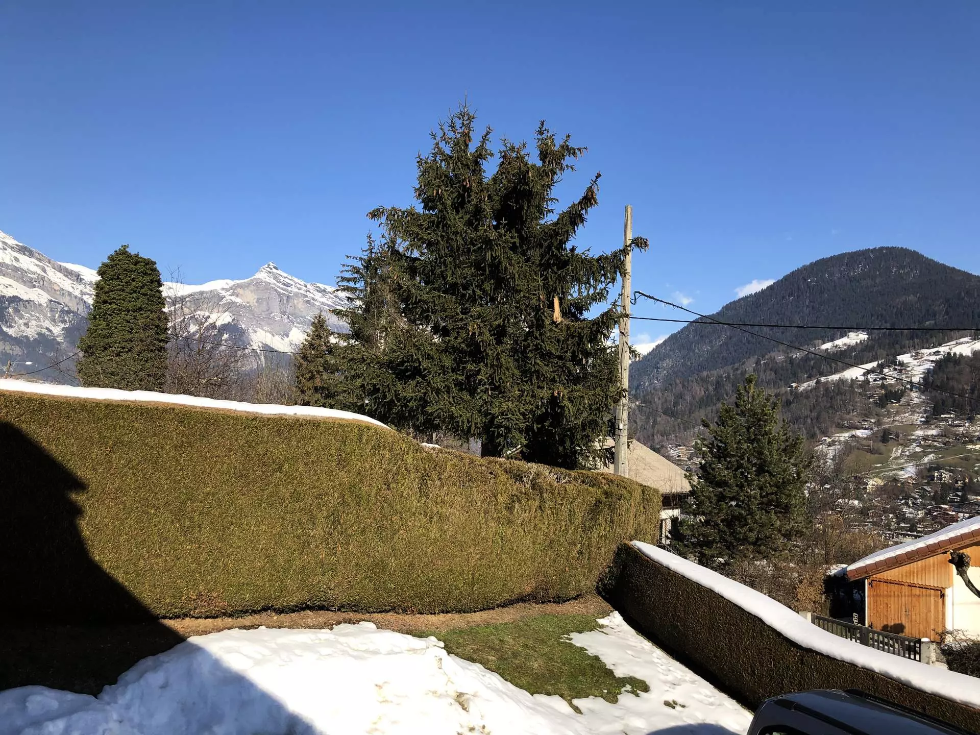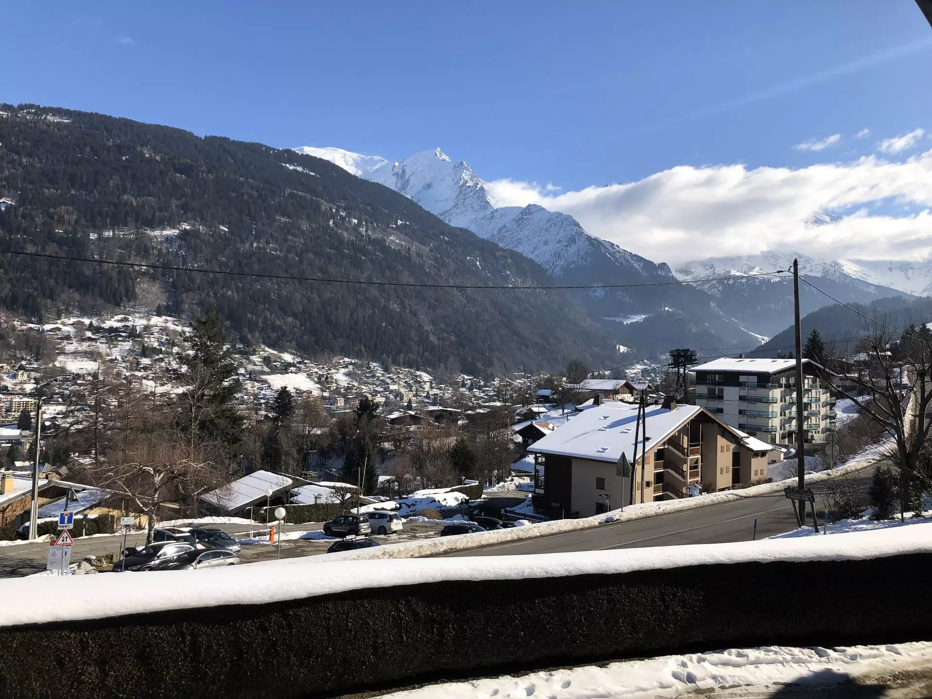 The apartment is on the ground floor. It faces east and has a balcony with a lovely view of Mont Blanc.