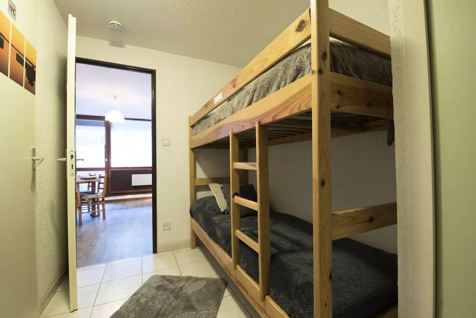 In the entrance hallway you will find 2 bunk beds, a bathroom and a separate toilet.