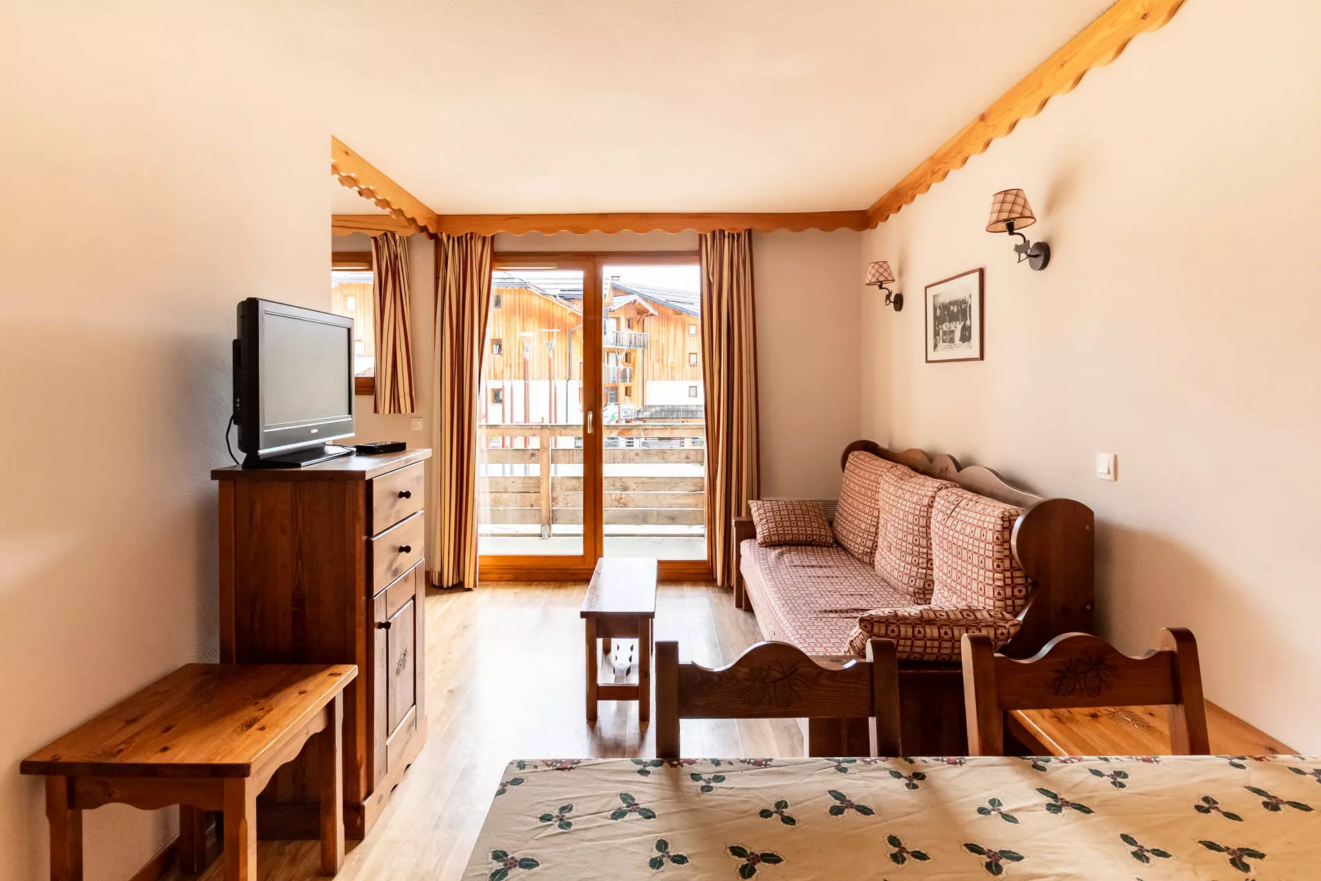 In addition, you will have access to the wellness area where you will find the heated outdoor swimming pool, sauna cabins and the fitness area of the residence (open during the summer and winter seasons).