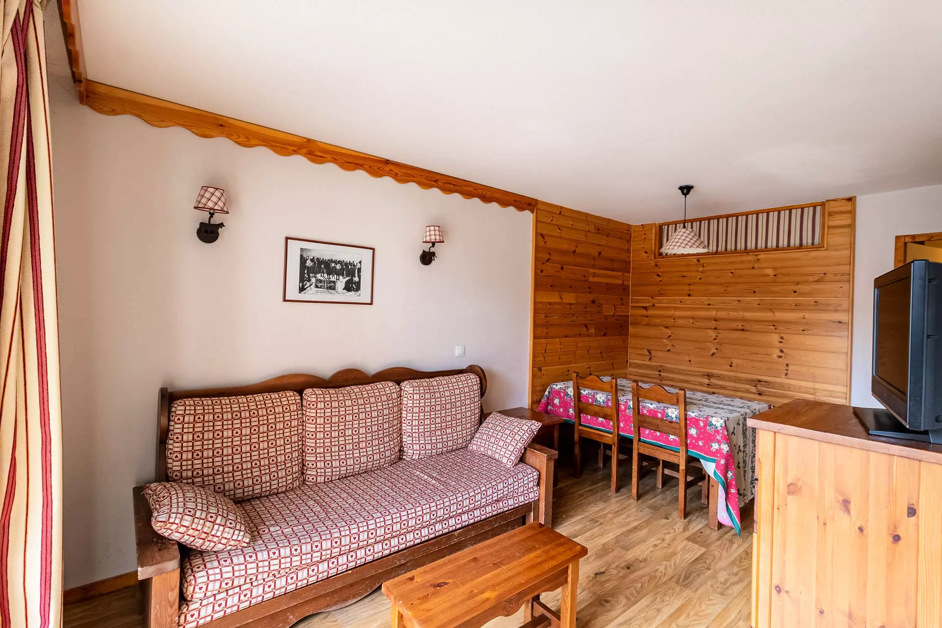 This 38 m² 2-room apartment with a rustic atmosphere is located on Place des Orres 1800, in the "Les Silènes" building in Hauts de Préclaux and can accommodate up to 6 people.