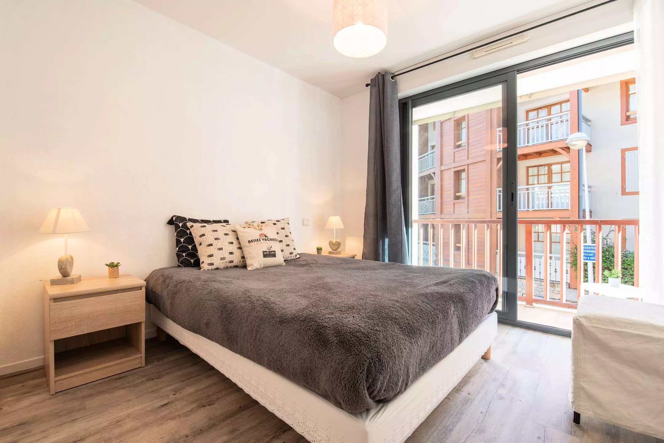 A bedroom with 1 double bed (140cm) and a private balcony